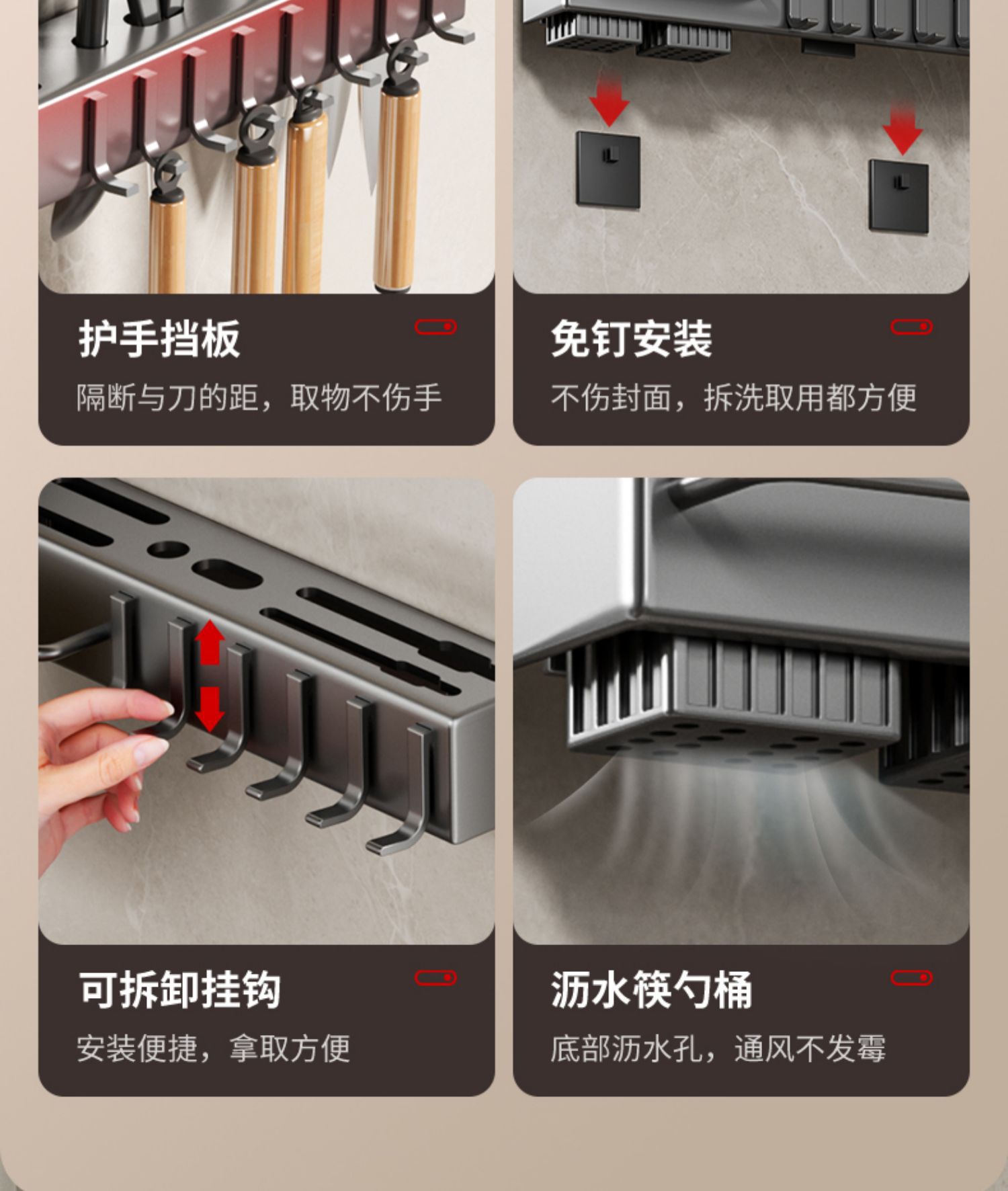 Estante de herramientas de cocina sin perforación Estante de almacenamiento Jaula de palillos multifuncional montada en la pared Tubo de palillos Suministros de herramientas Estante de almacenamiento integrado