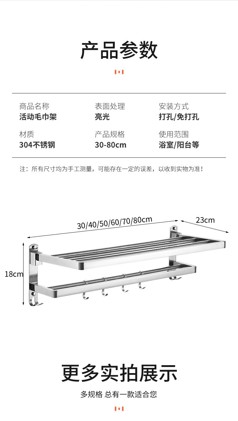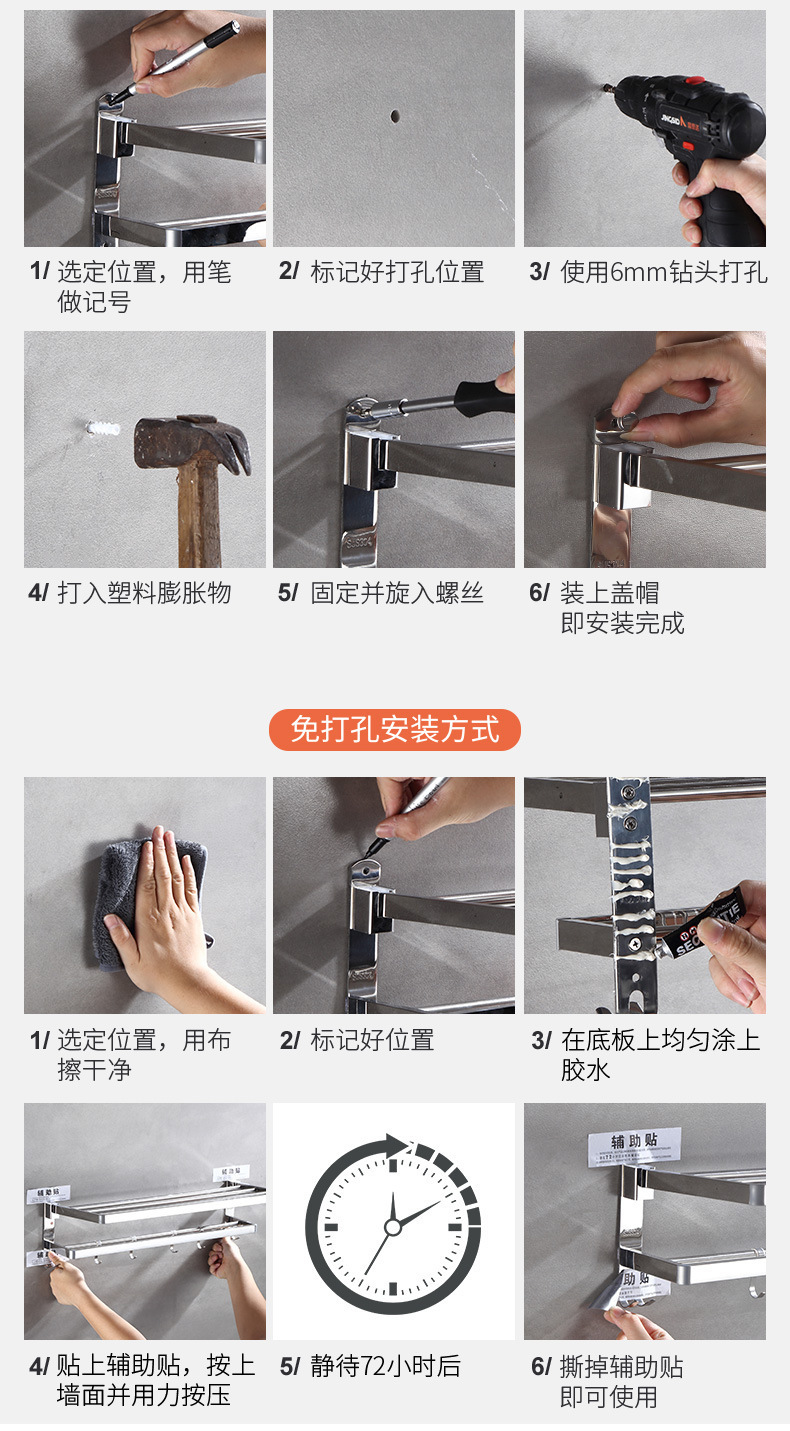 | Colores | Toallero de baño 40CM [perforación/sin perforación de doble propósito],Toallero de baño 50CM [perforación/sin perforación de doble propósito],Toallero de baño 60CM [perforación/sin perforación de doble propósito],Toallero de baño 70CM [perforación/sin perforación de doble propósito],Toallero de baño 80CM [perforación/sin perforación de doble propósito] |