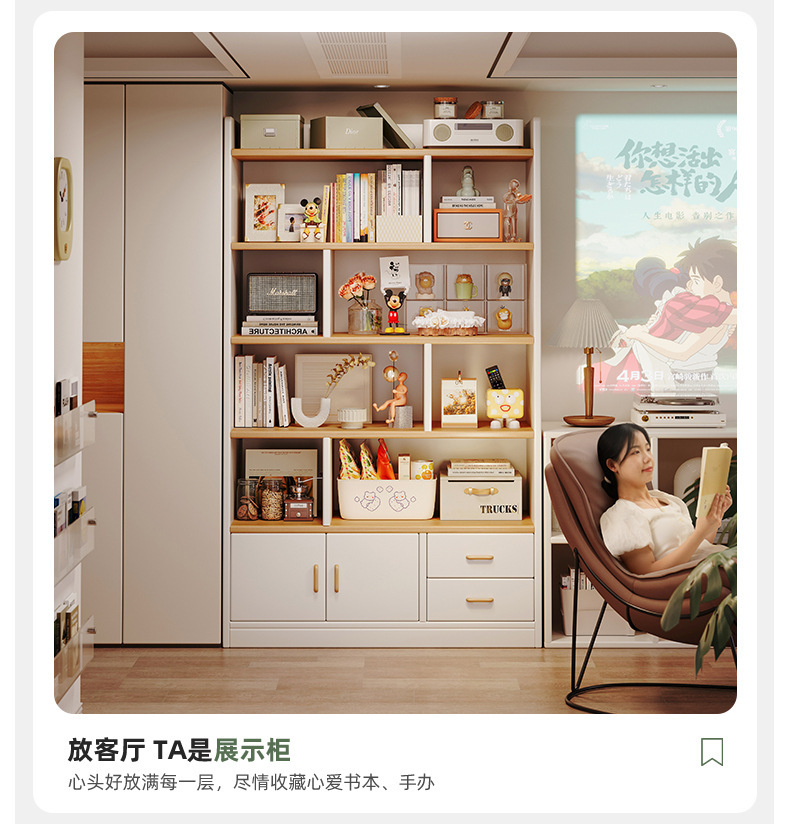 Gabinete de almacenamiento de madera maciza, gabinete de almacenamiento, sala de estar, gabinete de exhibición contra la pared, estante de piso para el hogar, estante multicapa, gabinete de almacenamiento