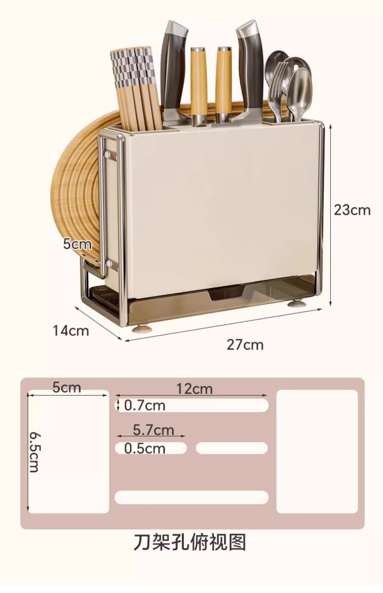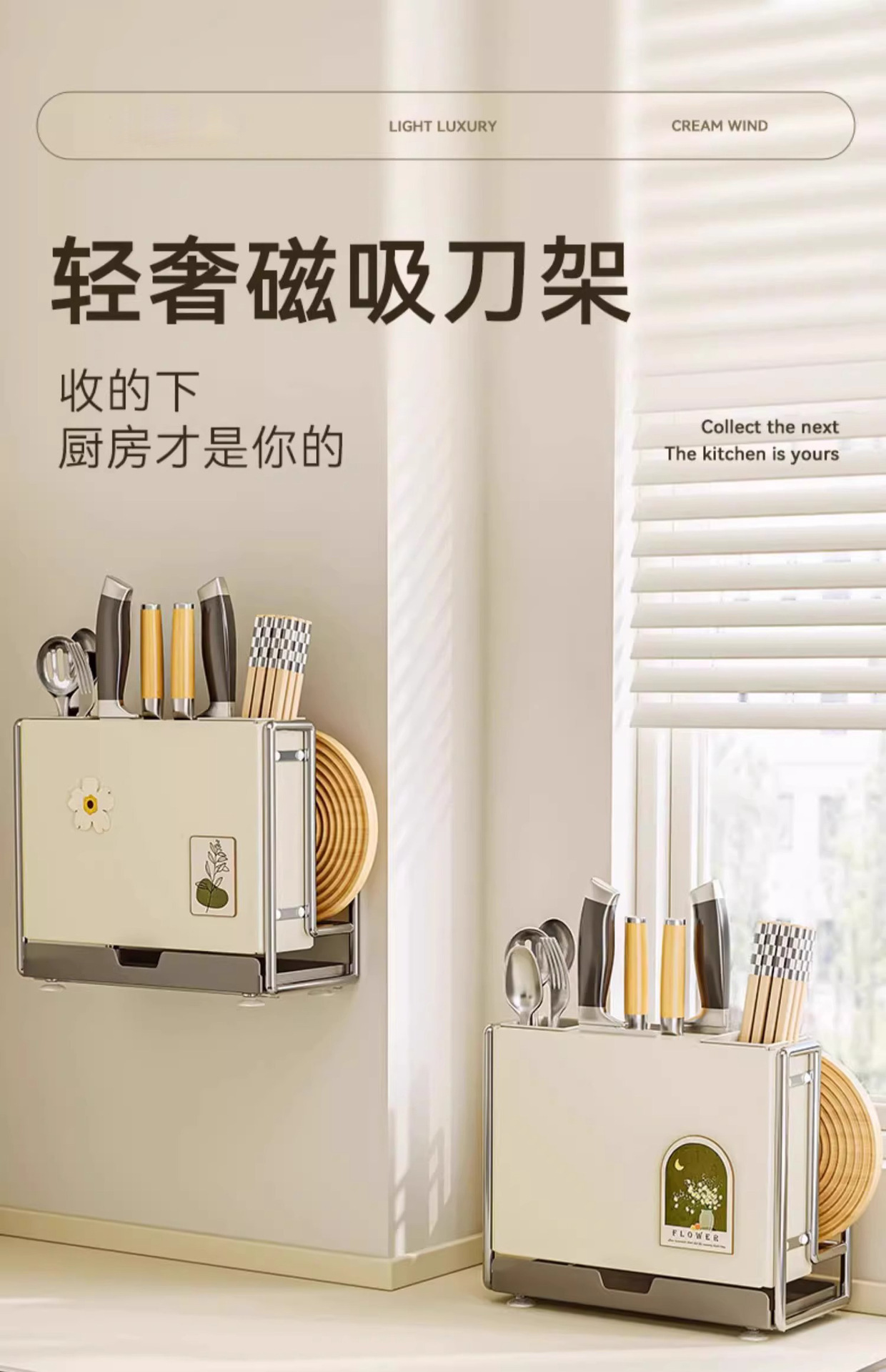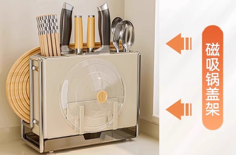 Estante de cuchillos de cocina Estante de almacenamiento Encimera de hogar de estilo crema Tablero de cocina magnético Estante de tapa de olla Jaula de palillos Estante de almacenamiento de cuchillos integrado