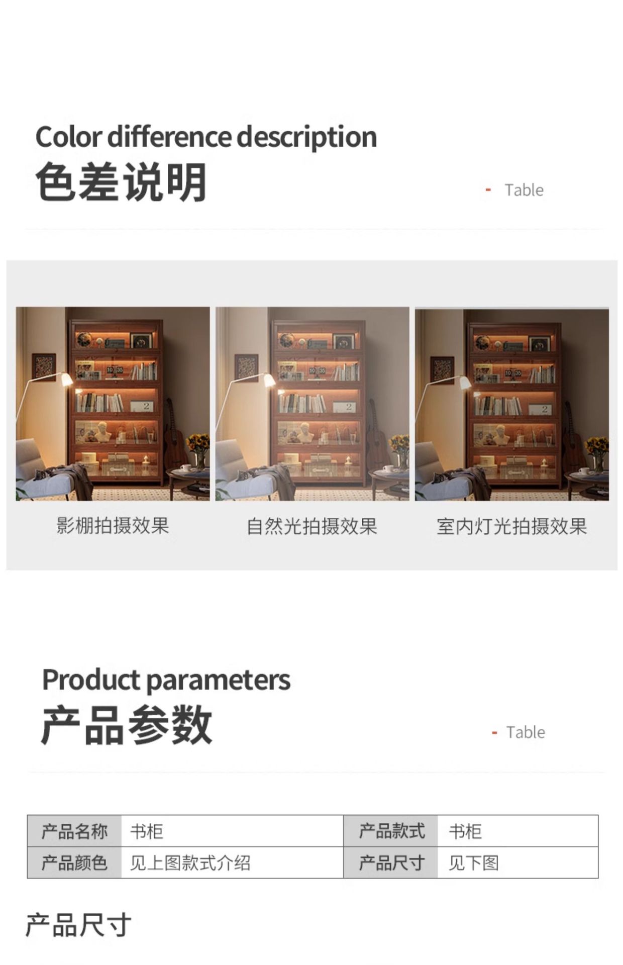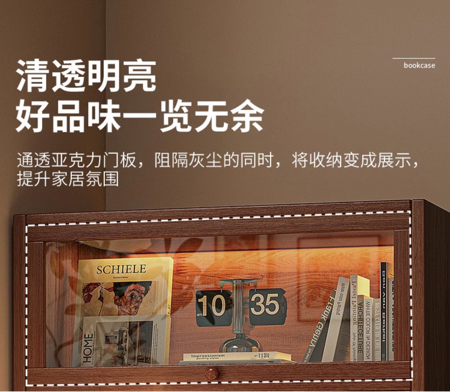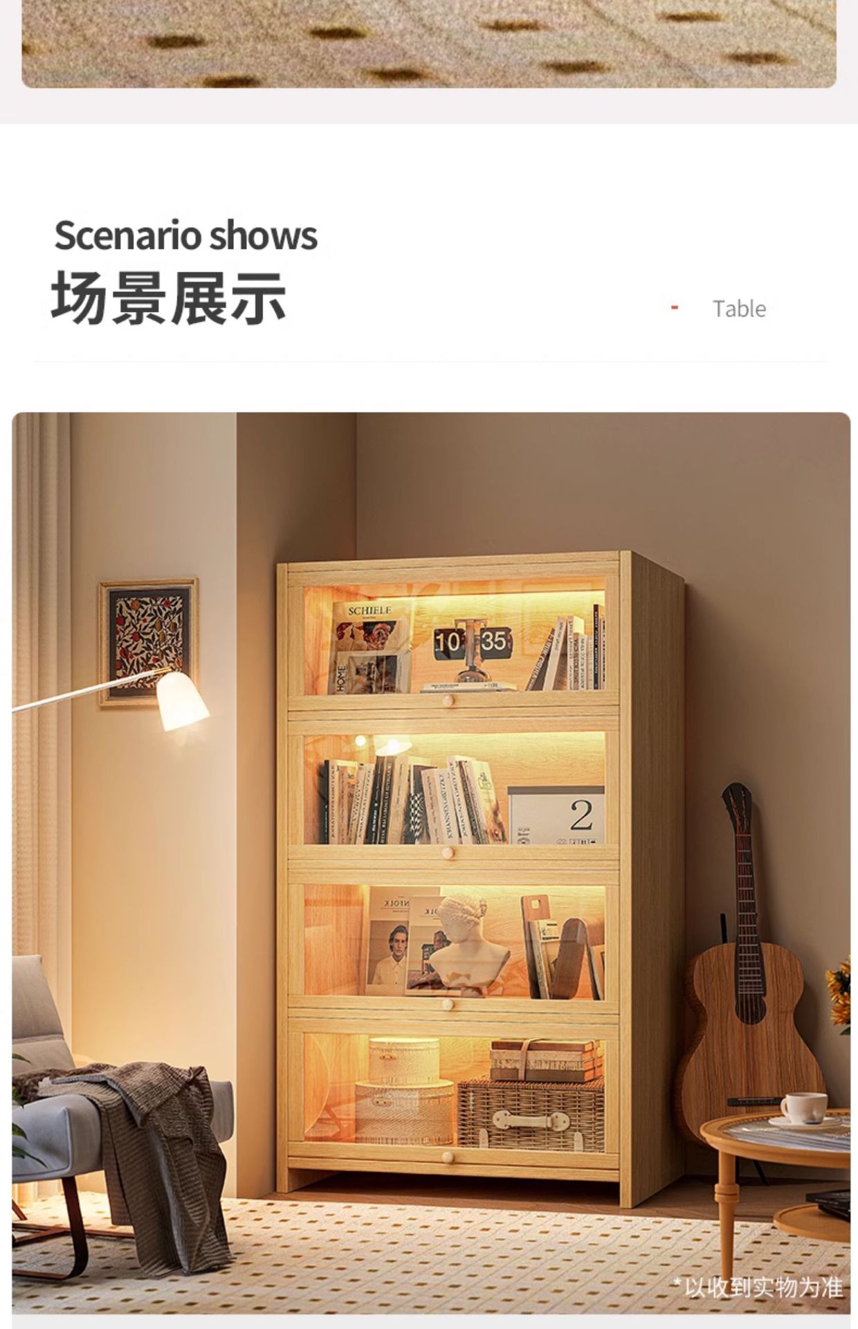 Estantería de madera maciza, armario de almacenamiento, todo en uno, madera de nogal, vidrio de imitación, armario de exhibición, sala de estar, piso, estantería a prueba de polvo