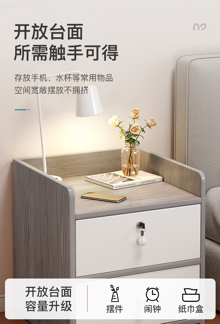 Mesita de noche, estante pequeño minimalista moderno, dormitorio principal simple, nuevo armario de almacenamiento, pequeño armario junto a la cama