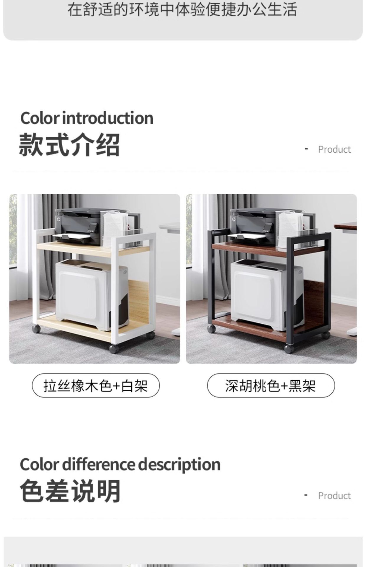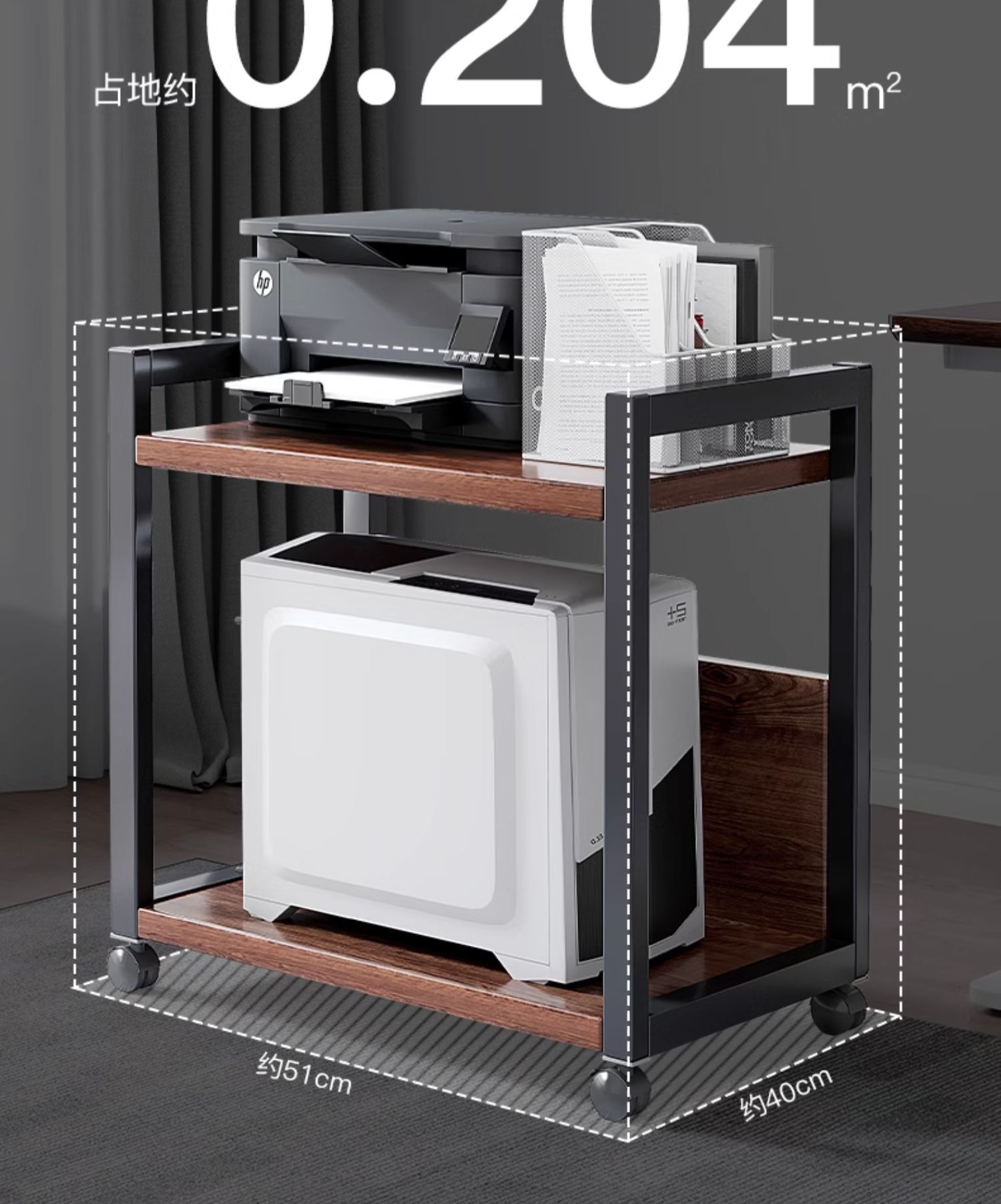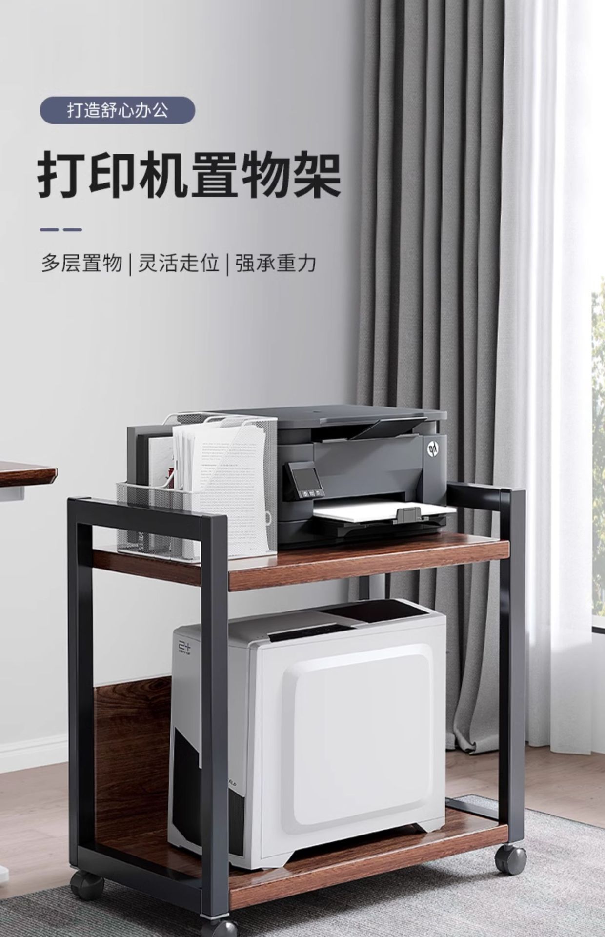 Estante de impresora, oficina de piso, almacenamiento móvil multicapa, gabinete de acabado de hierro forjado, estación de trabajo, soporte de host de computadora