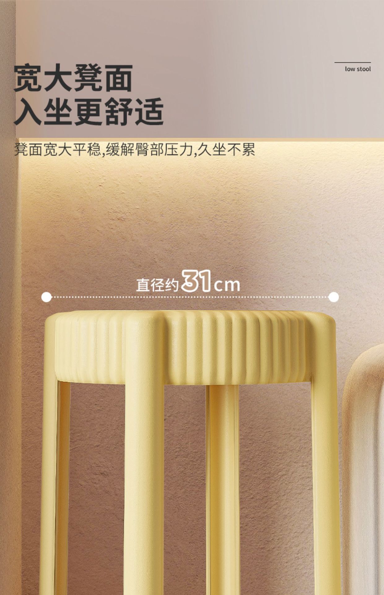 Taburete de plástico, taburete redondo apilable, taburete de comedor simple moderno para el hogar, taburete alto grueso, duradero, silla, taburete de molino de viento