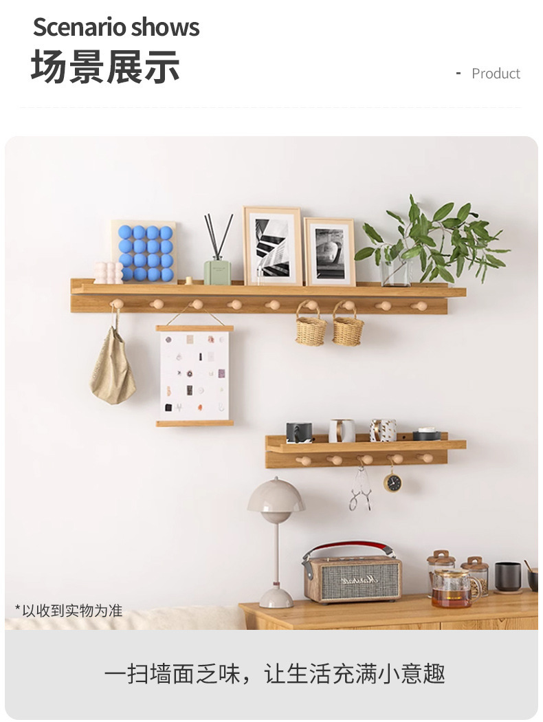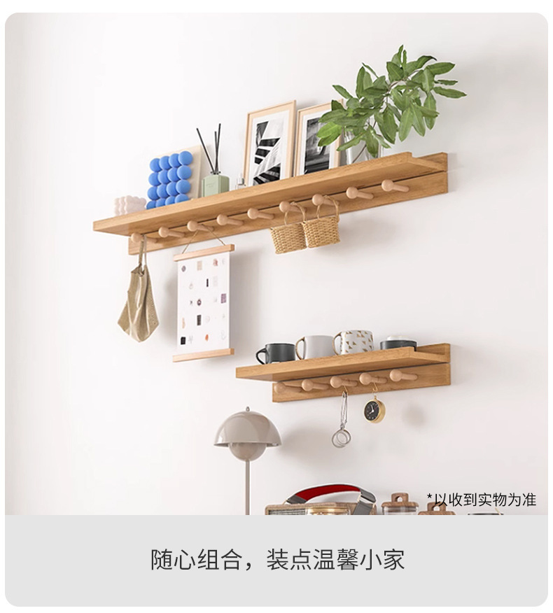 Estante de una palabra en la pared de madera maciza Estante de pared con gancho Tablero de madera para sala de estar Tablero de almacenamiento decorativo junto a la cama