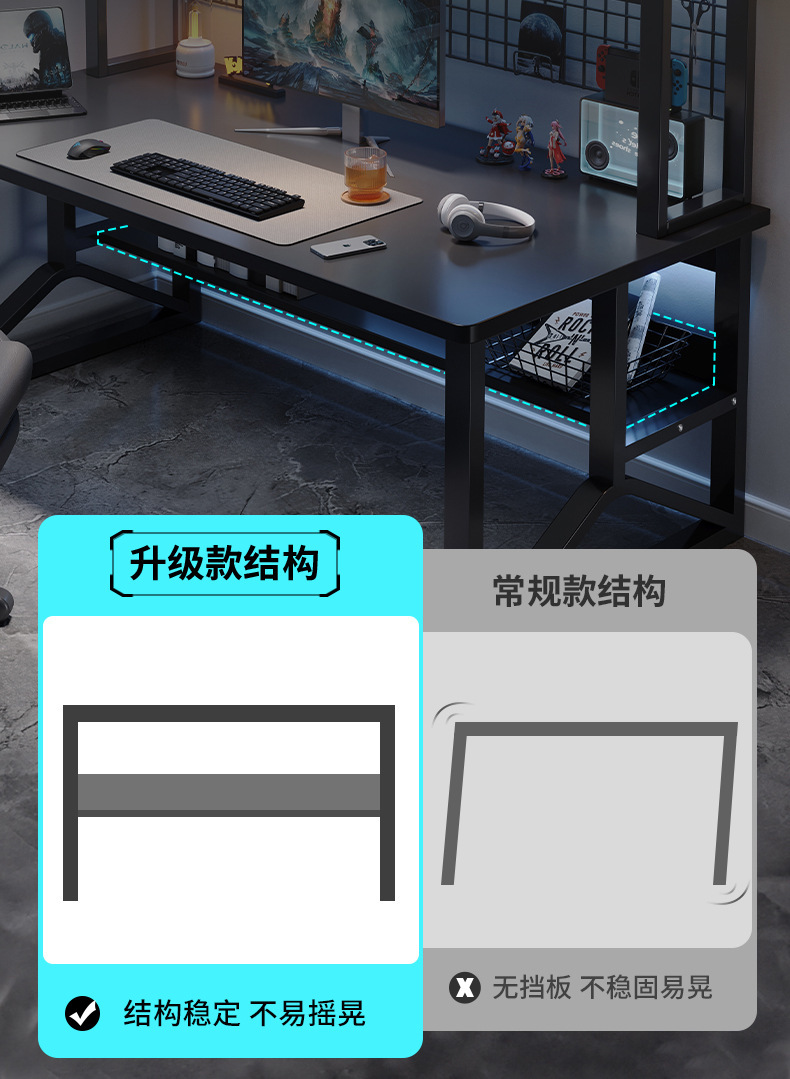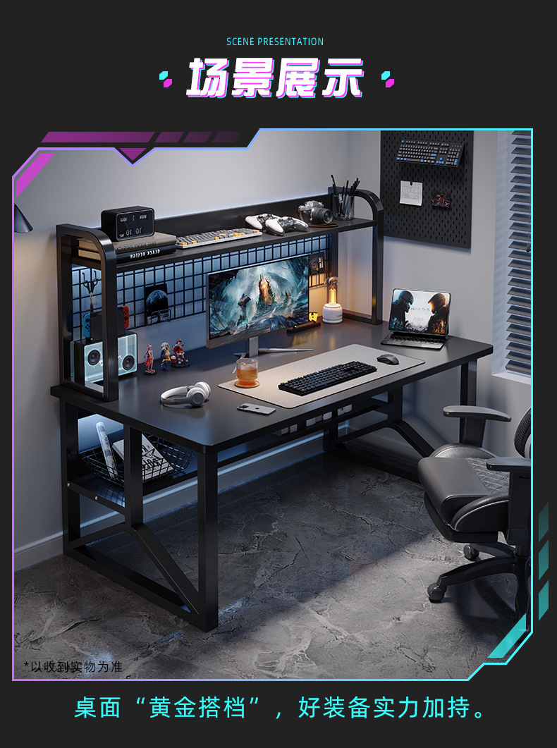 Escritorio para computadora Escritorio Juego de mesa y silla para deportes electrónicos Dormitorio Escritorio para el hogar Estante de estantería Mesa integrada con tablero de agujeros