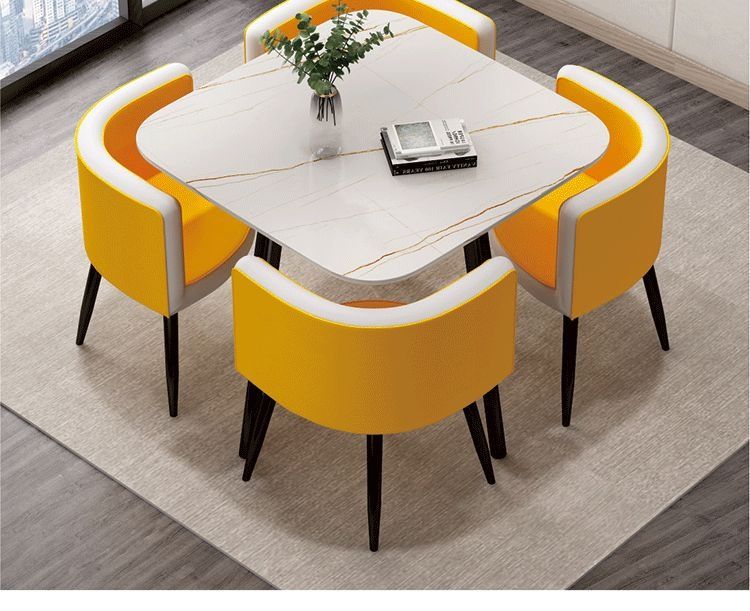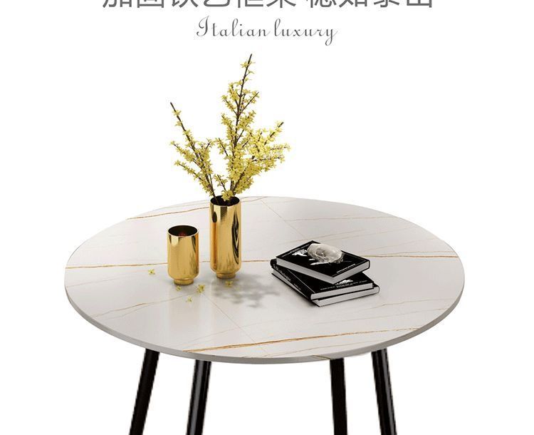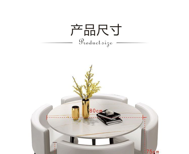 Mesa de comedor de placa de roca roja neta, mesa de negociación de recepción, combinación de mesa y silla, oficina de ventas, 4 personas, mesa redonda pequeña, tienda de té con leche simple