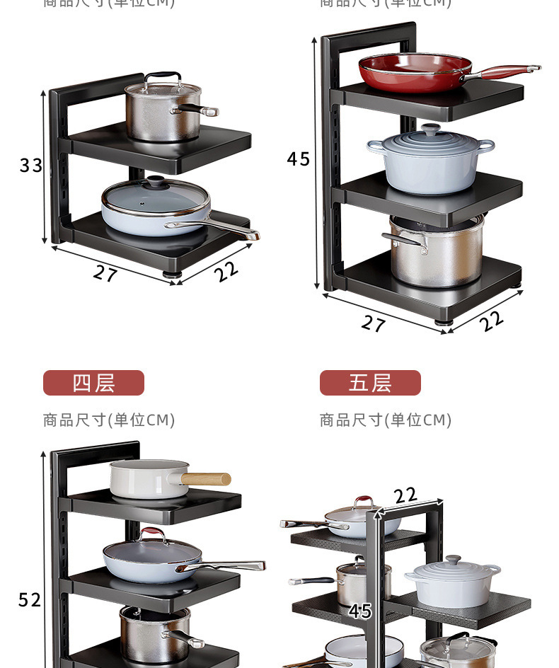 Estante de cocina Estante de almacenamiento de utensilios de cocina multifunción para el hogar Gabinete multicapa Fregadero interior e inferior Estufa Estante de olla en capas