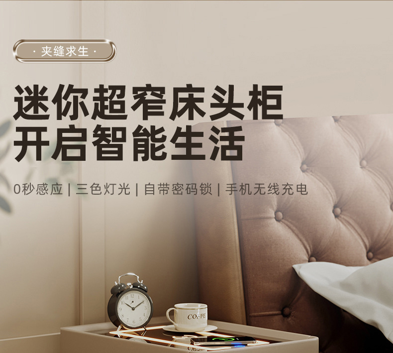 Mesita de noche inteligente simple y moderna pequeña súper estrecha 2024 nueva carga inalámbrica 30 cm dormitorio lado de la cama gabinete estrecho