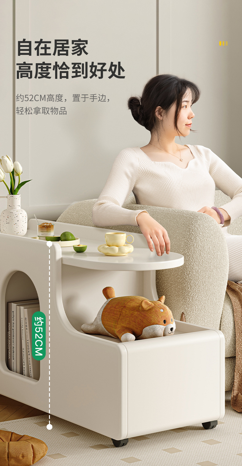 Mesa de centro pequeña móvil de estilo crema, armario lateral de sofá, apartamento pequeño, red creativa, mesa lateral de sala de estar, carrito minimalista nórdico