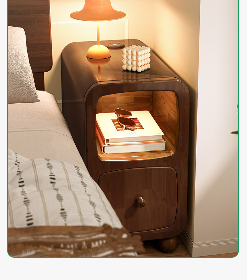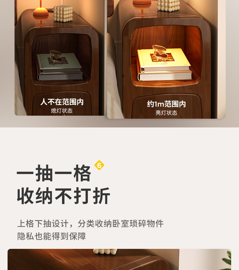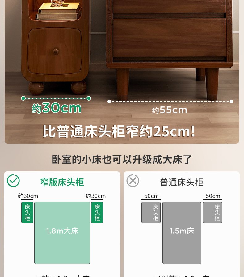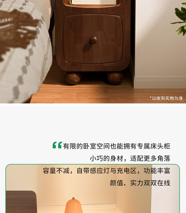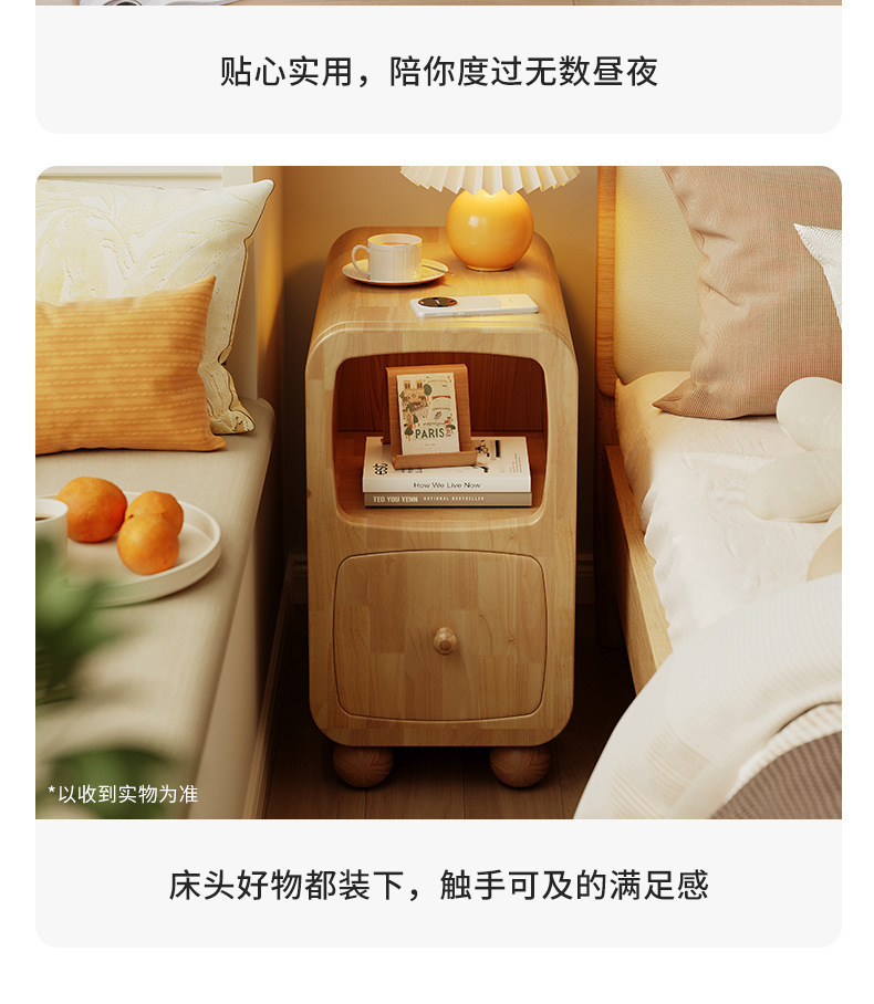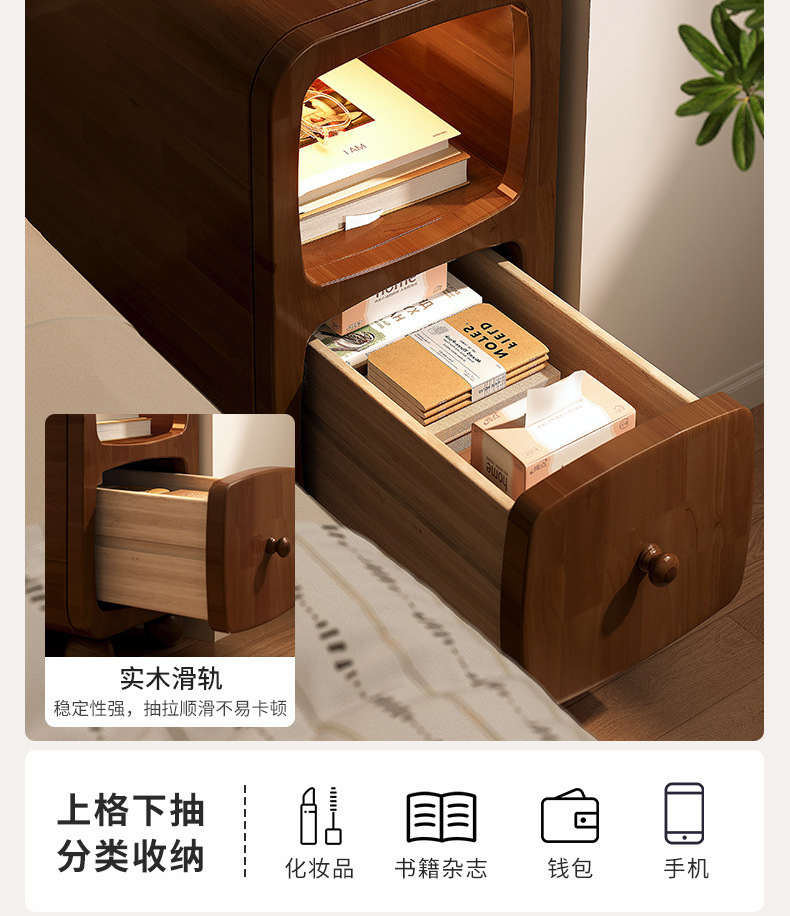 木床头柜小型极窄带灯床边柜超窄30公分20cm床边窄夹缝柜置物架