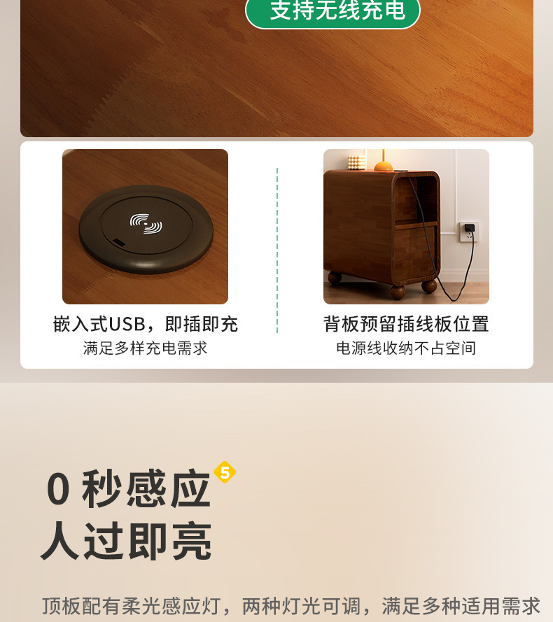Madera maciza-color de madera de ancho-25CM (lámpara de carga inalámbrica)