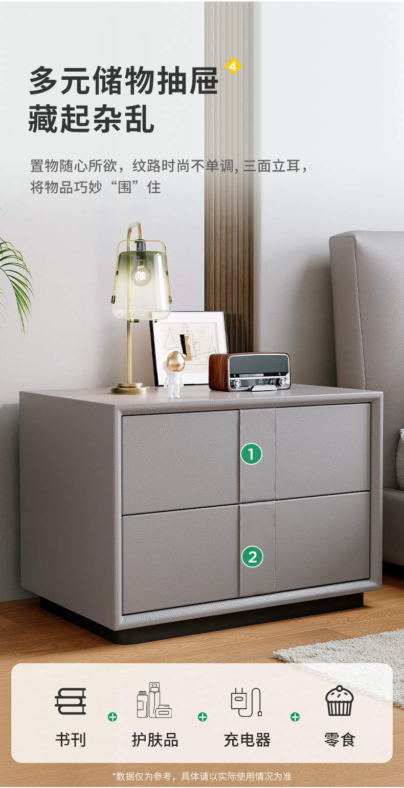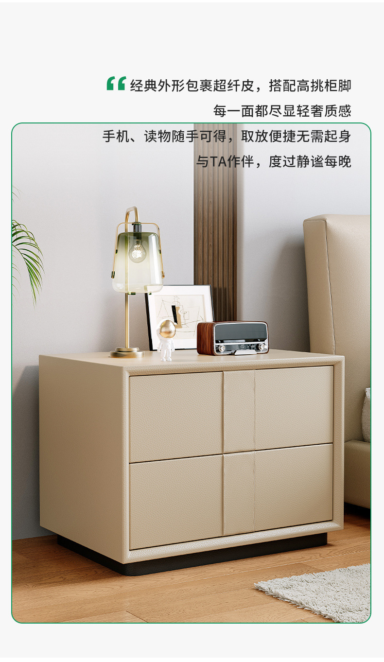 Mesita de noche simple y moderna 2024 nuevo estilo de lujo ligero, cama de cuero del dormitorio principal de alta gama, mesa de borde de cama, mesa de almacenamiento de borde de cama de celebridades de Internet