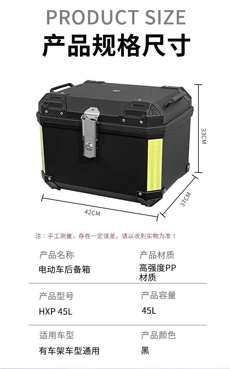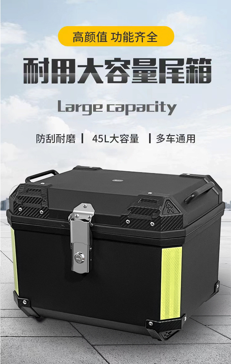 Impermeable resistente al desgaste casco completo PP material motocicleta tronco 45L universal motocicleta batería coche tronco
