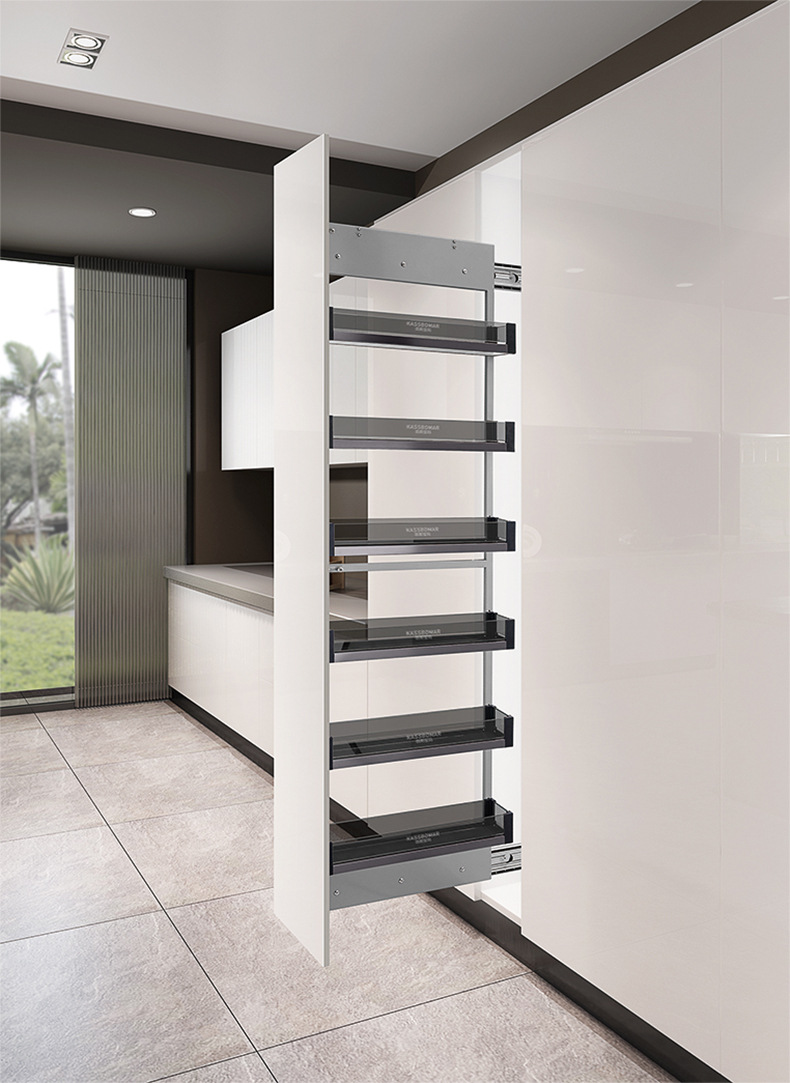 Cesta de aperitivos de armario alto de múltiples capas armario de cocina cesta de tracción de montaje lateral almacenamiento de cristal negro cesta de tracción de alta profundidad ultra estrecha