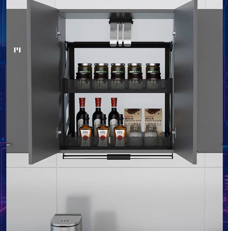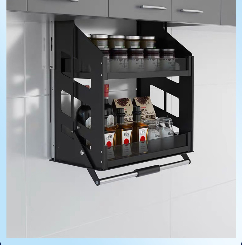 Gabinete de cocina que cuelga la cesta de elevación del Gabinete gabinete de pared superior vertical desplegable condimento cesta elevador buffer rack de almacenamiento