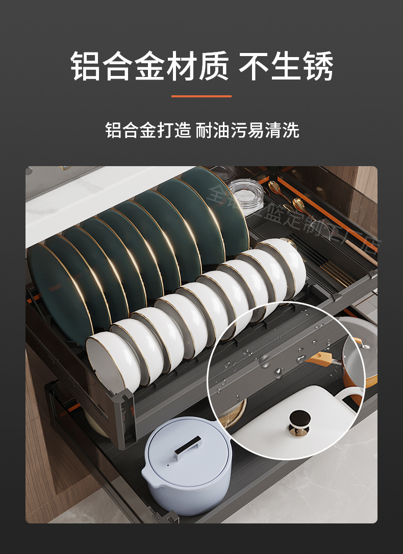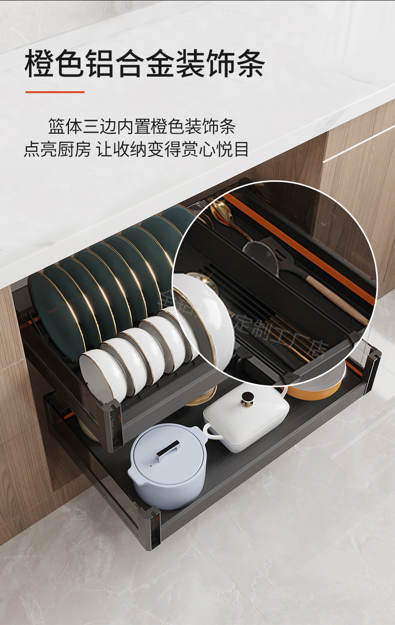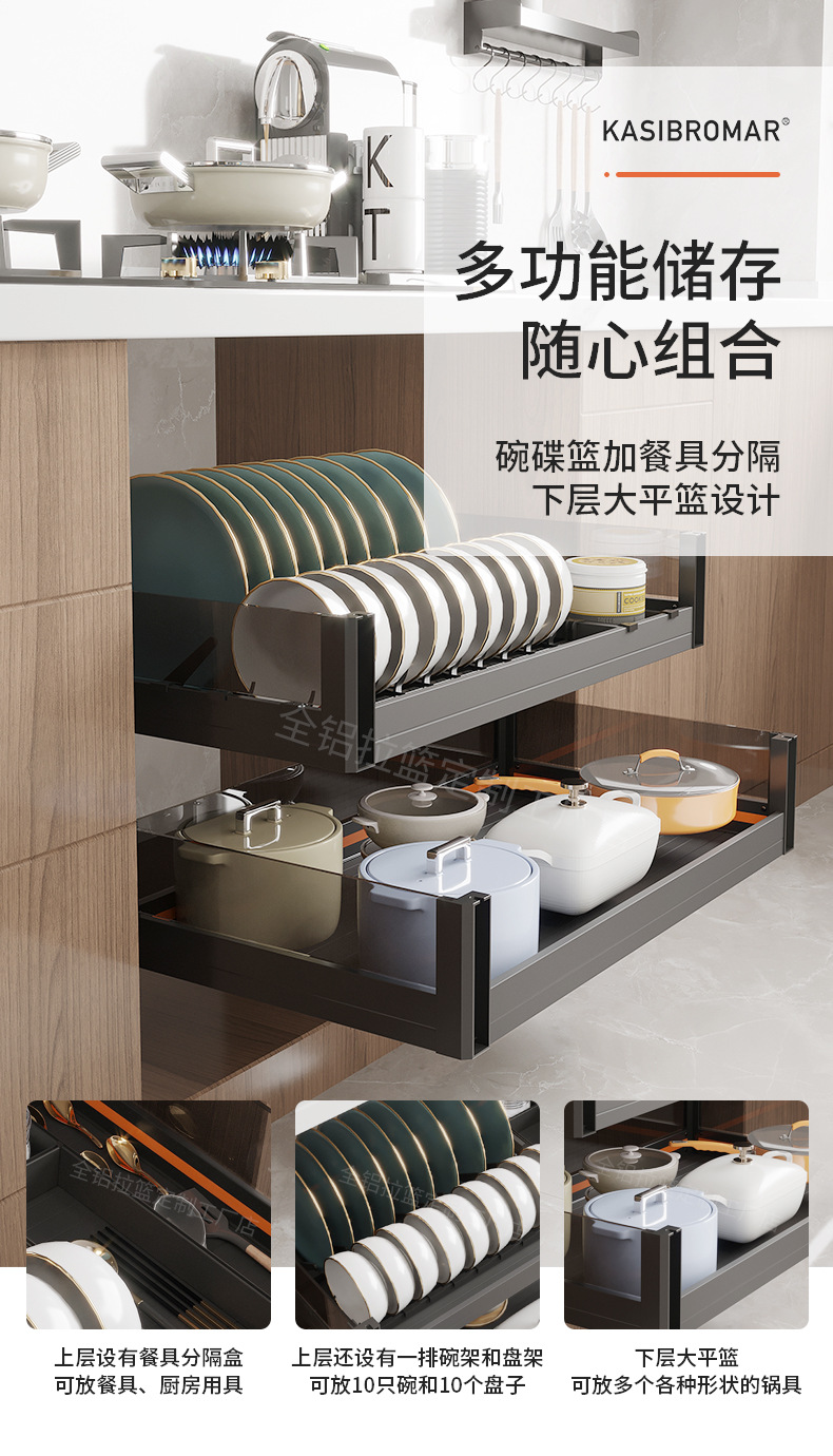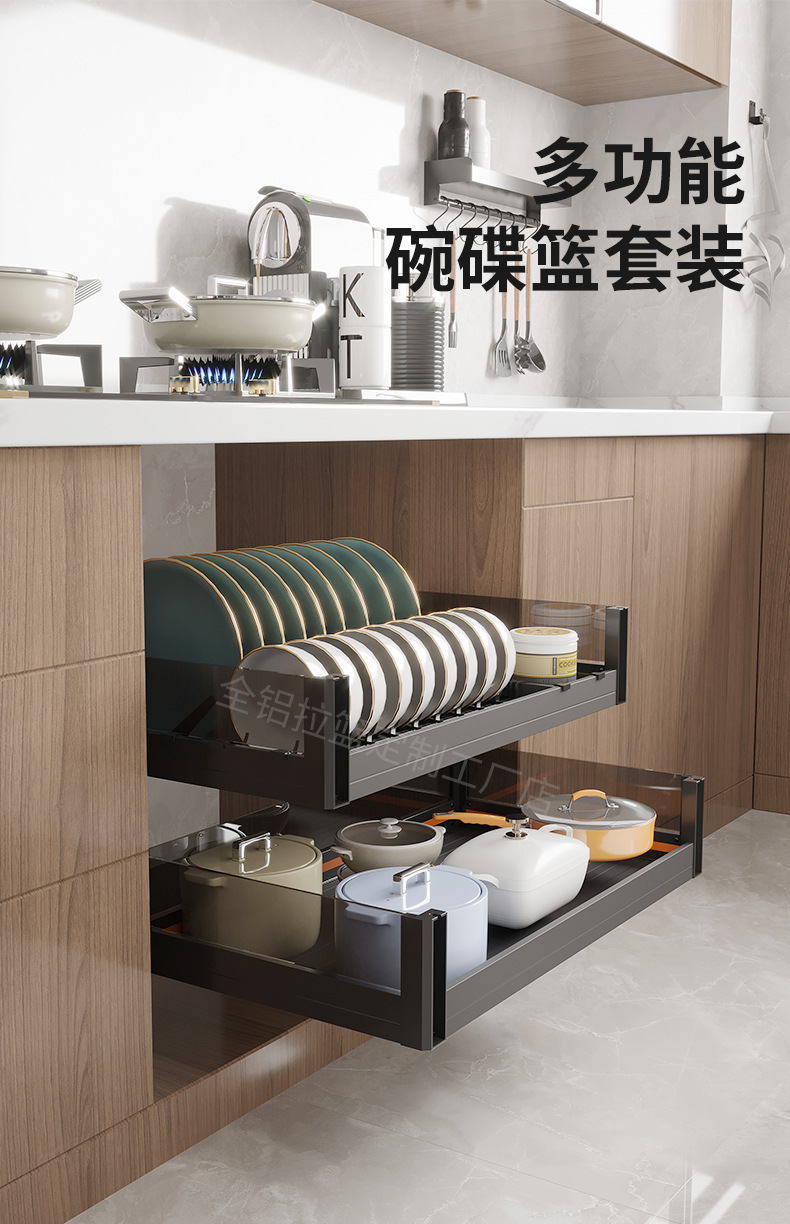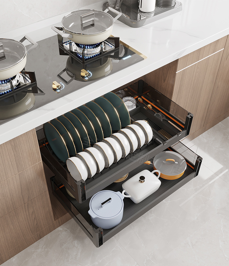 Cesta de cocina Cesta de tazón del gabinete Cesta de almacenamiento de cajón de doble capa de aleación de aluminio engrosado Gabinete de almacenamiento de platos Gabinete de cocina Cesta de almacenamiento