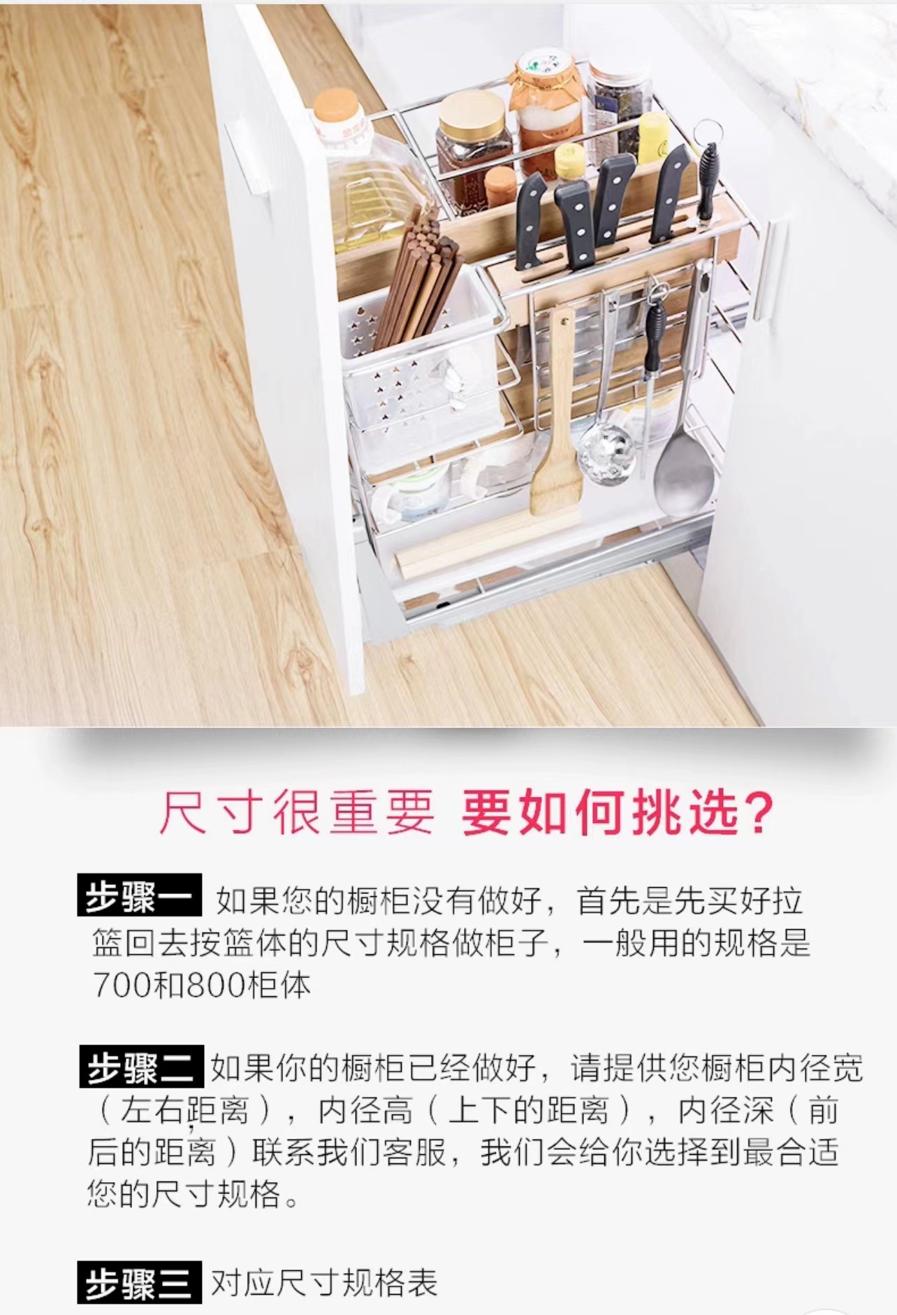 En stock cesta extraíble cesta de condimento de doble capa cesta extraíble de acero inoxidable armario de cocina cajón estante plato cesta de almacenamiento