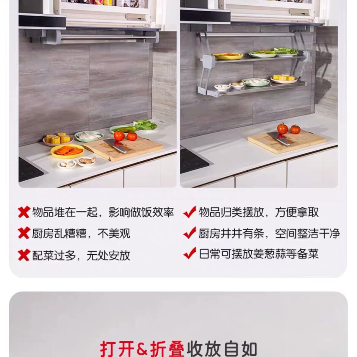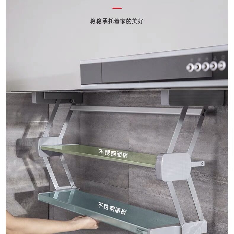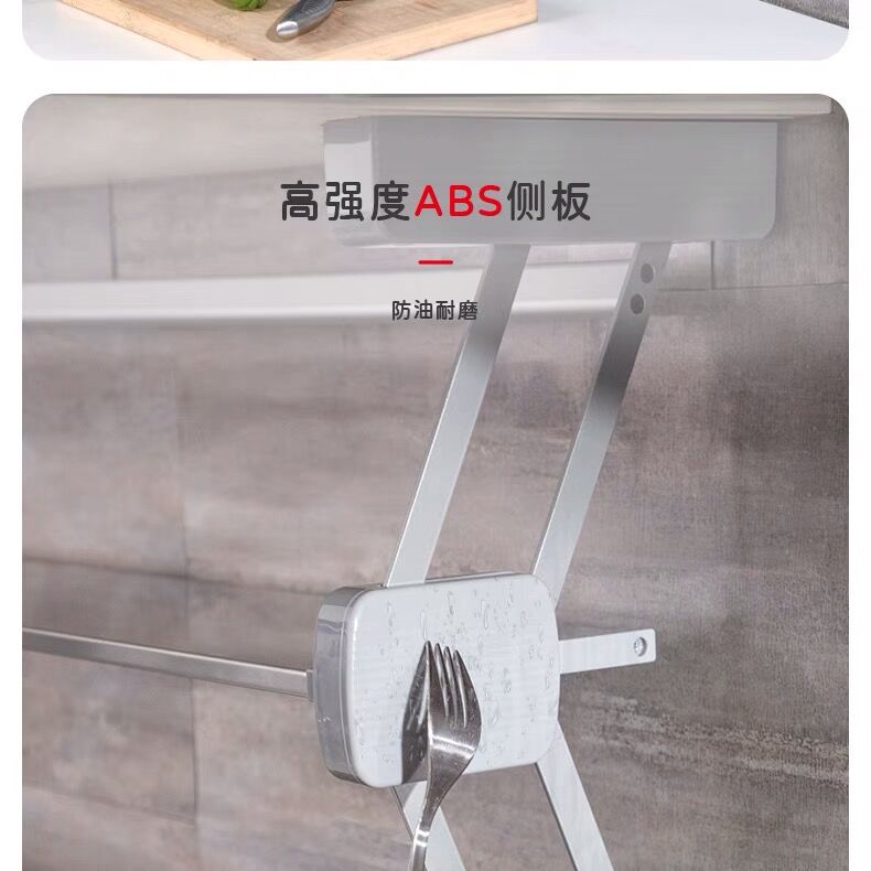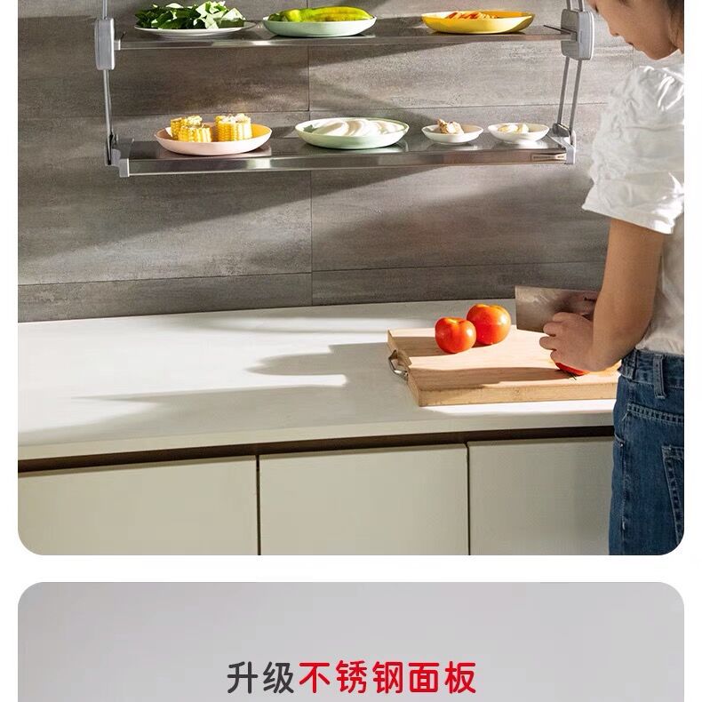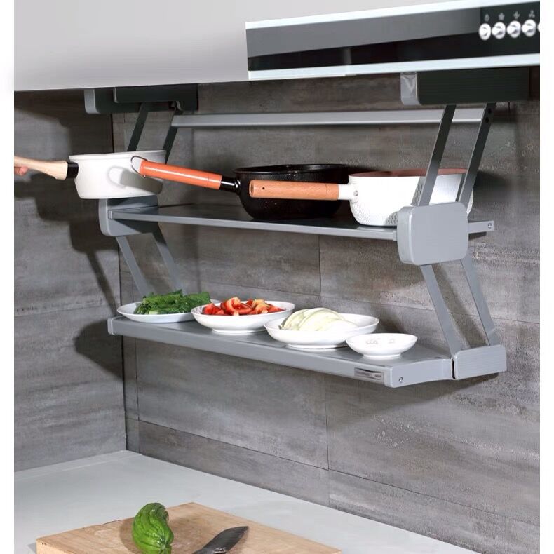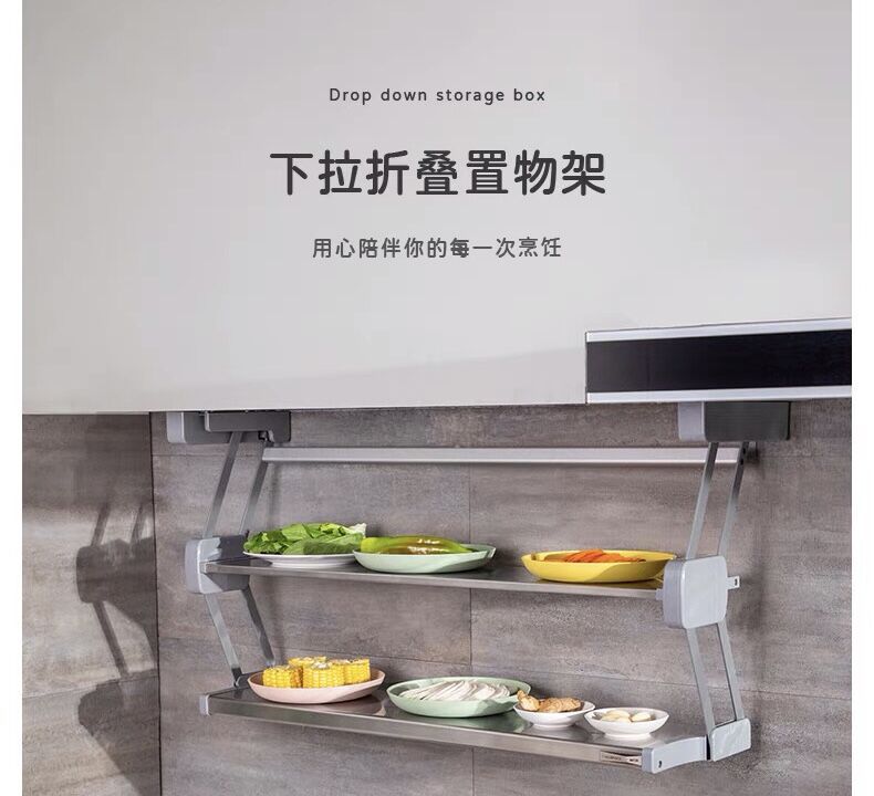 Ingredientes de cocina desplegable de doble capa plegable cesta de la cocina colgante gabinete de almacenamiento tazón plato de acero inoxidable condimento botella de almacenamiento rack