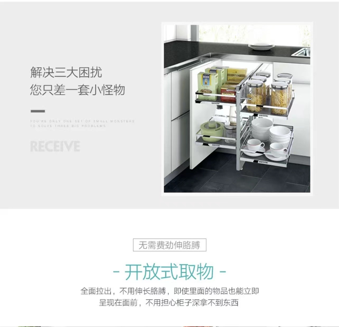 Gabinete de cocina cesta extraíble de almacenamiento de esquina cesta extraíble completamente abierta pequeño monstruo cesta extraíble de almacenamiento de cocina cesta extraíble cesta de condimentos