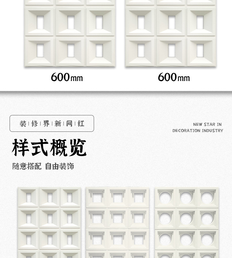Pu componente de cemento ladrillo hueco partición de una sola cara Jiugongge Internet celebridad luz arte decoración 600*1200