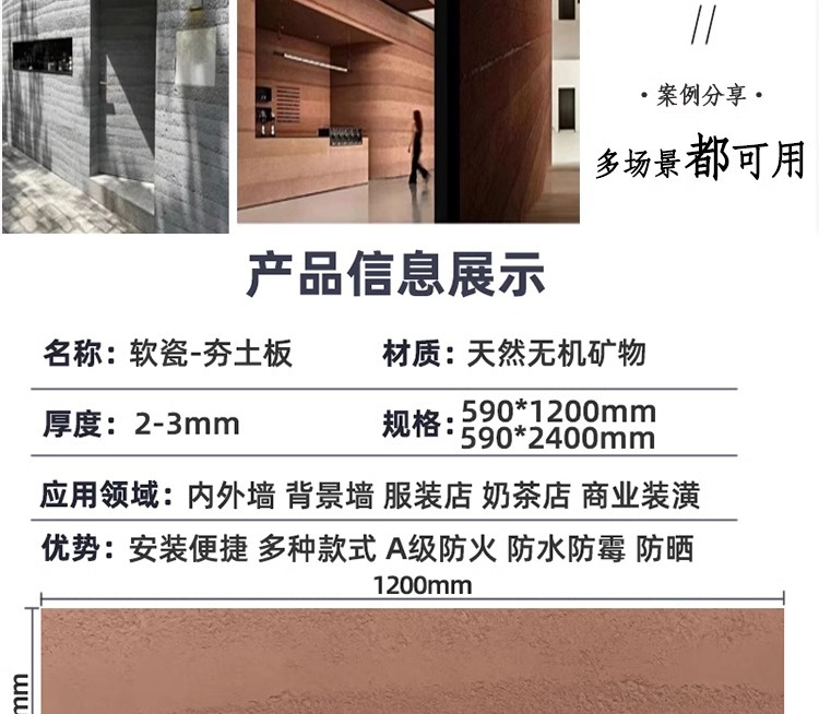 Tablero de tierra apisonada de porcelana blanda Piedra flexible flexible Tablero de piedra blanda ultrafino Tablero de fundición de arte Panel de pared exterior