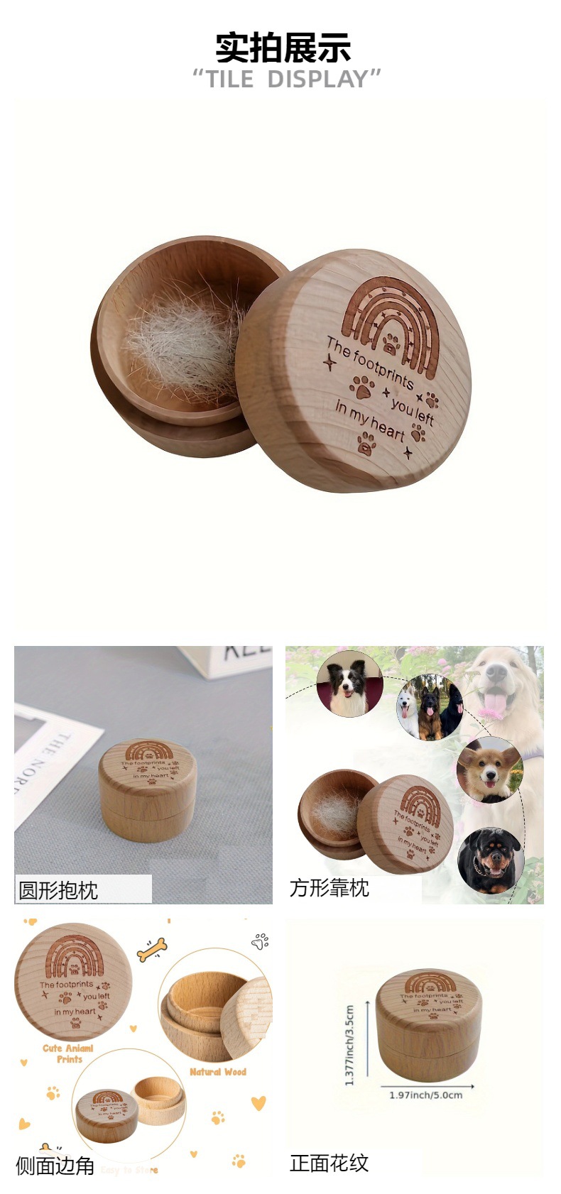 Caja de pelo conmemorativa de madera para mascotas Caja de almacenamiento conmemorativa de la colección de perros y gatos