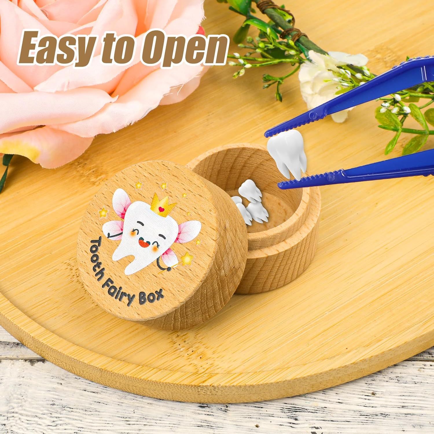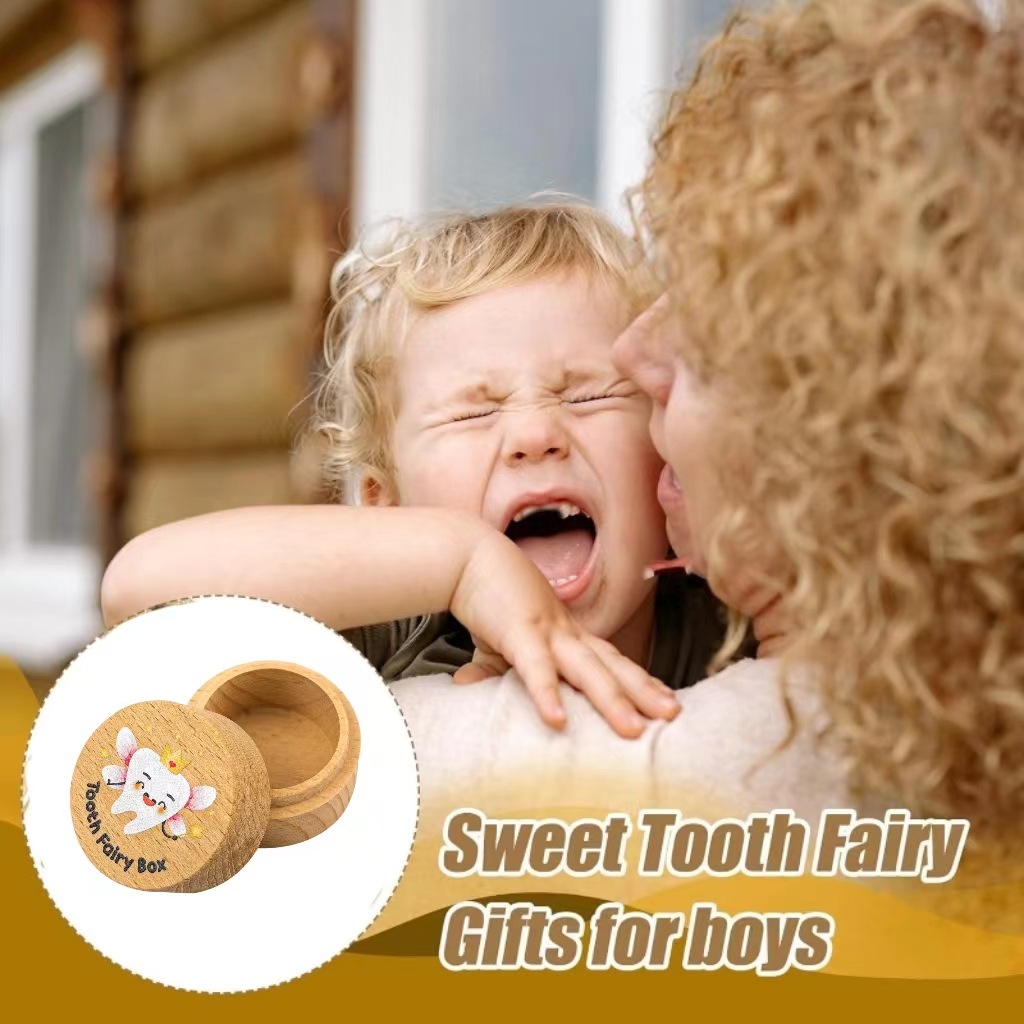 Caja de dientes de leche para niños de madera, caja de cambio de dientes para niños y niñas, caja de almacenamiento conmemorativa de colección de dientes de lanugo para bebés