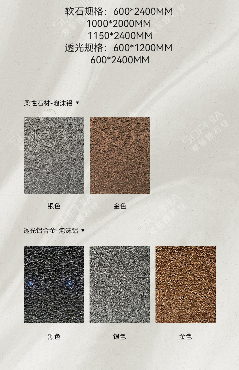 Espuma de piedra blanda, piedra flexible de aluminio, decoración de pared exterior, pared de fondo de aluminio espumado flexible flexible, tecnología, sentido de la arcilla A1