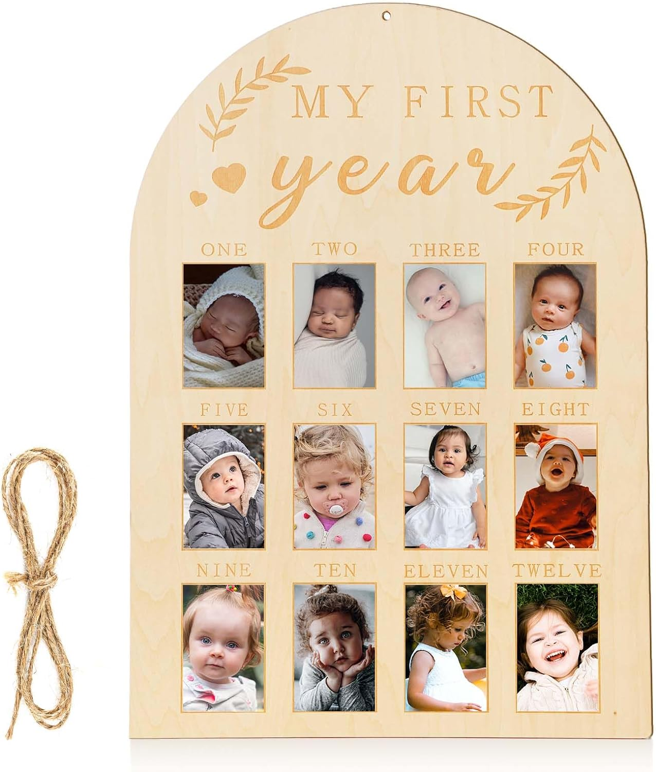 Recién nacido Primer año hito marco de fotos bebé de madera marco de fotos conmemorativo recién nacido tarjeta mensual marco de fotos