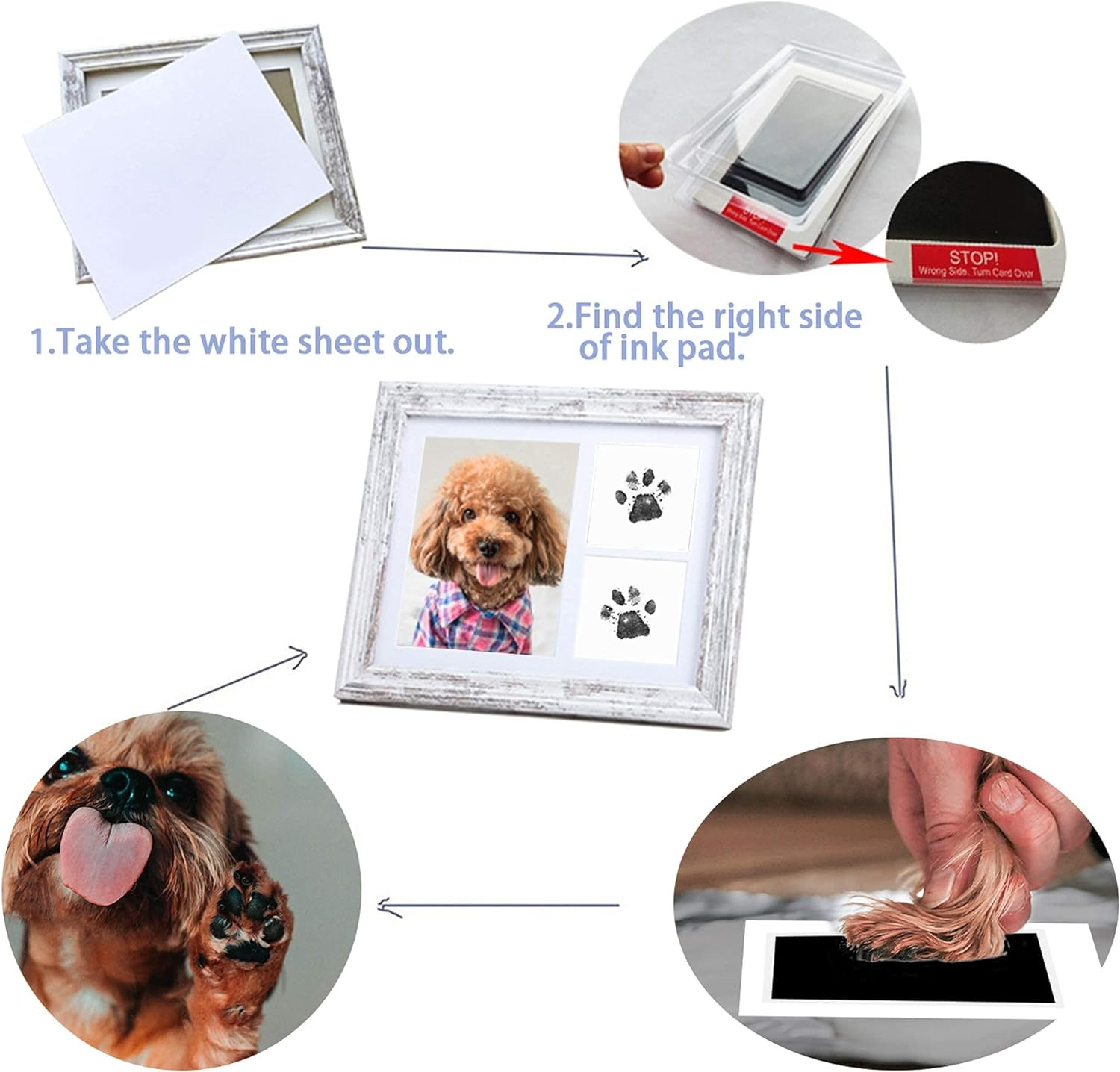 Mascotas huellas recuerdo foto marco gato pata impresión pie inkpad DIY perro Palma impresión foto marco decoración colgante