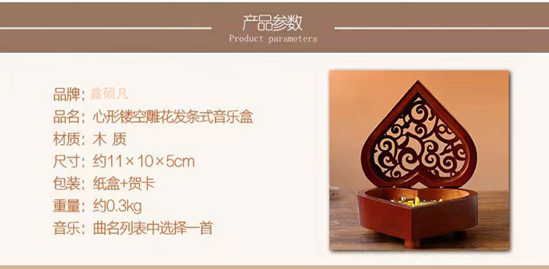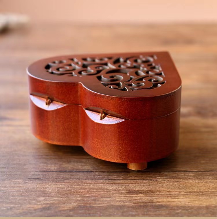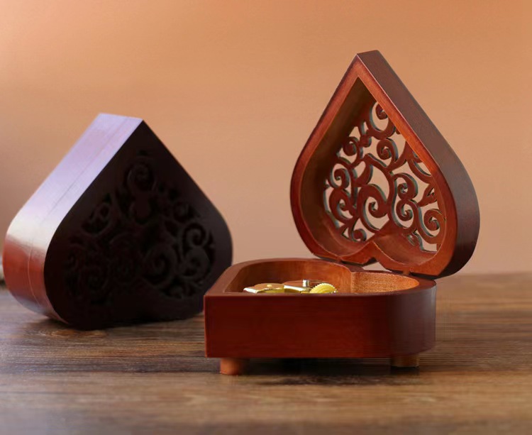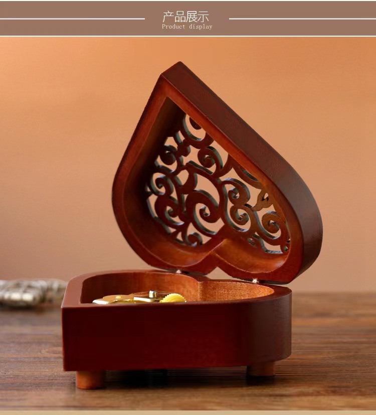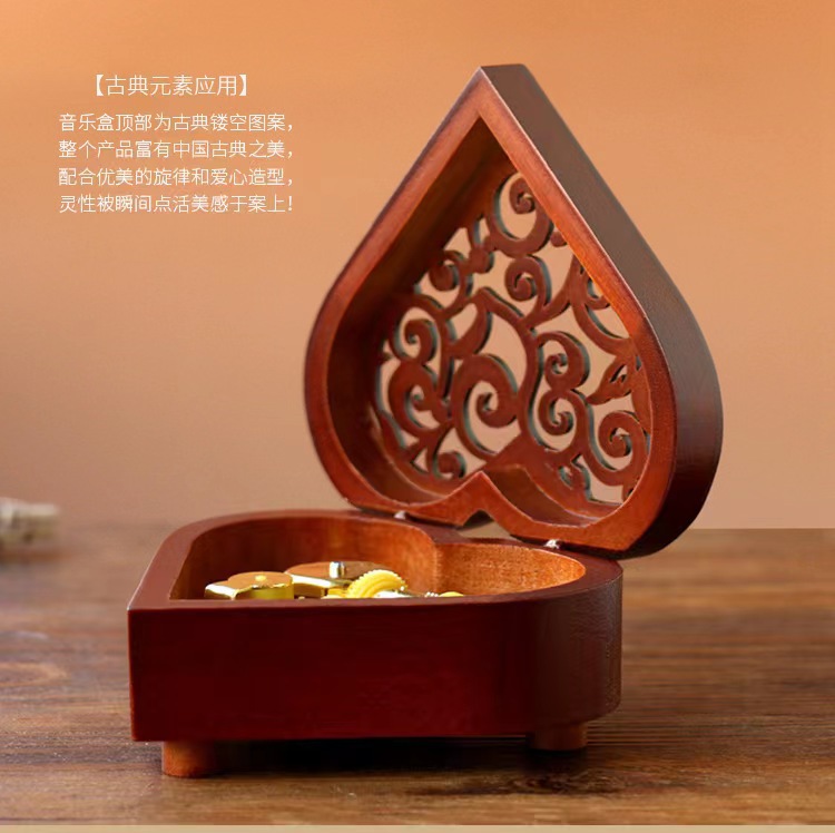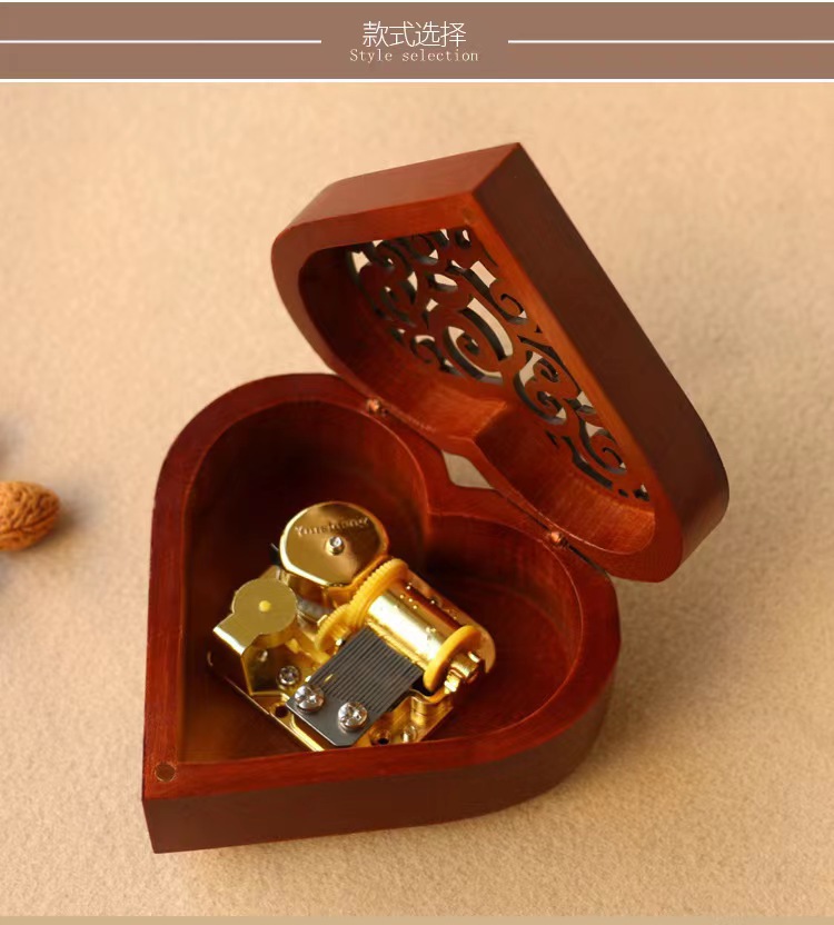 Xinshuofan retro reloj en forma de corazón caja de música de madera caja de música Sky City cañón regalo creativo regalo