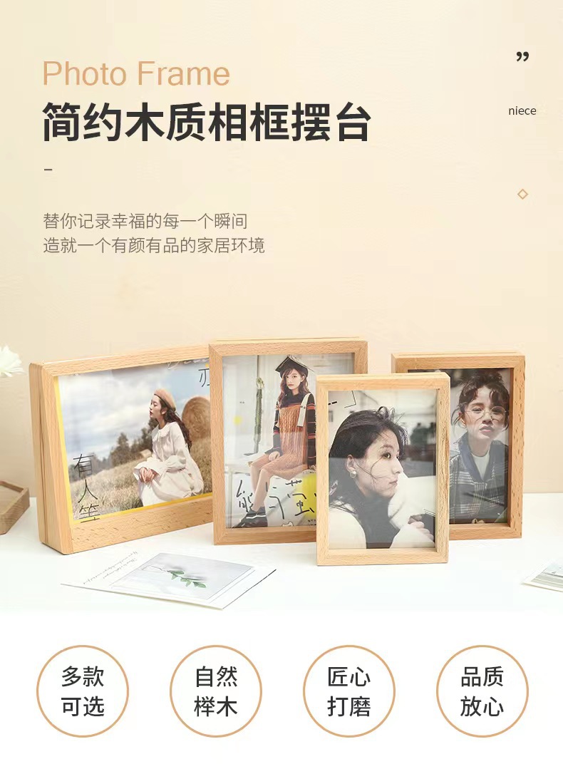 Marco de fotos de madera directo de fábrica escritorio decoración creativa sala de estar dormitorio decoración de la oficina marco de fotos de haya