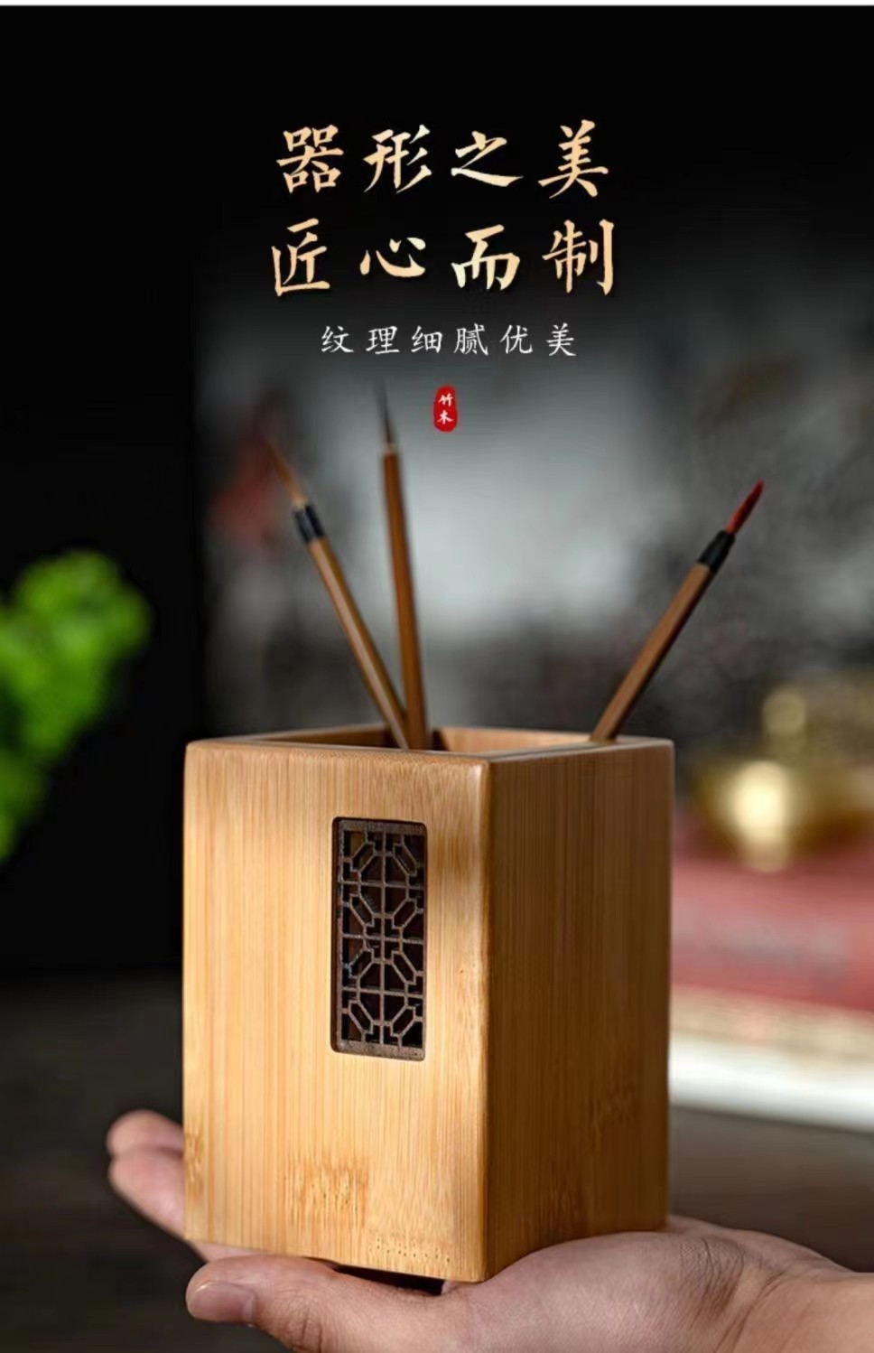 Madera maciza pluma creativa haya nogal bambú madera oficina escritorio decoración letras impreso logotipo de madera simple titular de la pluma