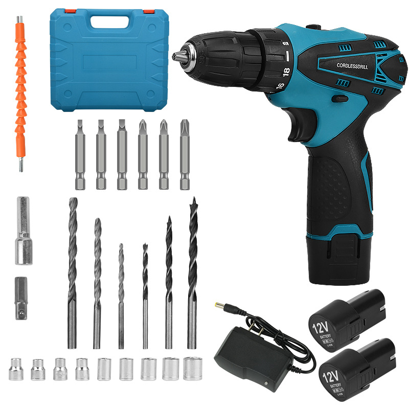 Taladro eléctrico de litio transfronterizo 12V taladro de mano recargable de doble velocidad destornillador eléctrico multifuncional destornillador eléctrico juego de taladro eléctrico