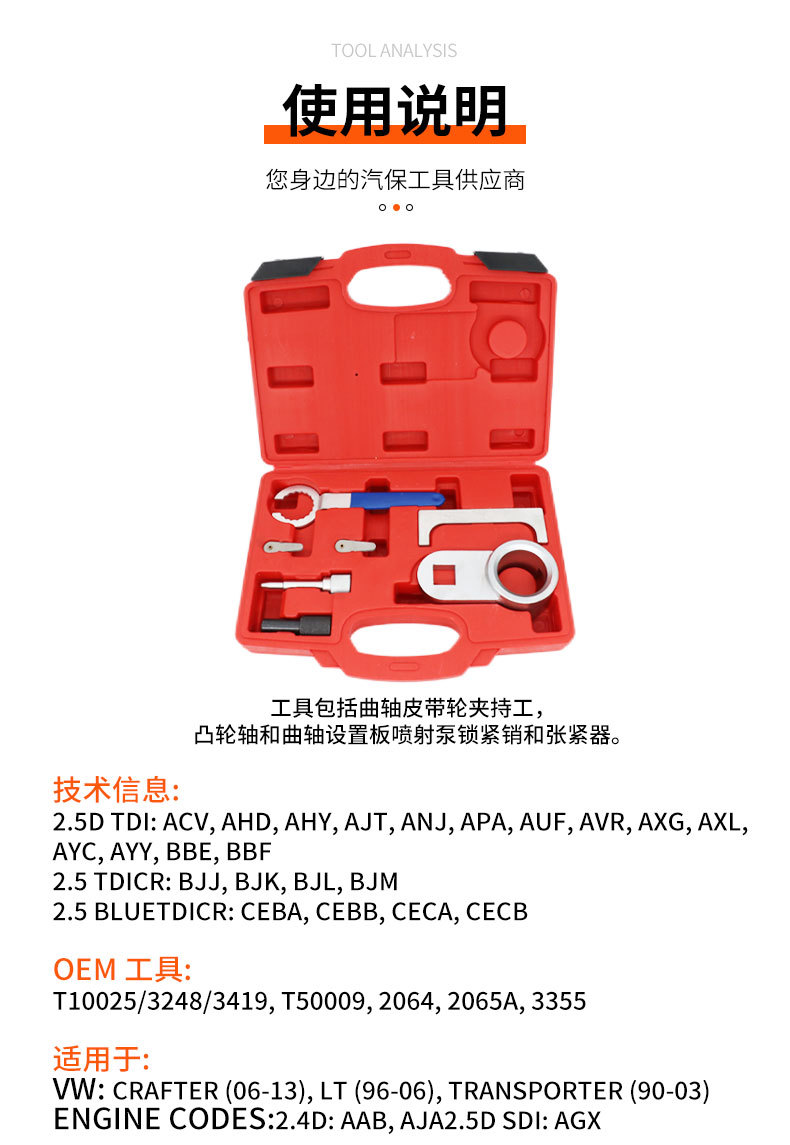 Volkswagen Audi 2.4 2.5 Diesel correa motor herramienta de distribución herramienta de mantenimiento de automóviles hardware herramienta de manga de reparación de automóviles