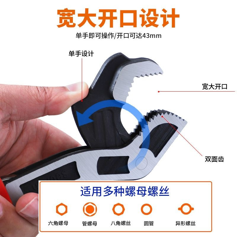 Llave universal de boca viva multifuncional con bloqueo automático, llave de baño, llave de apertura de gran calibre, llave móvil, herramienta Daquan