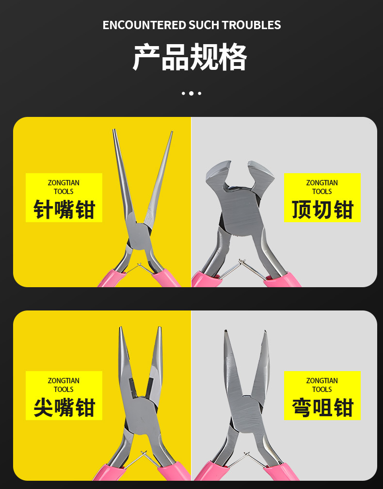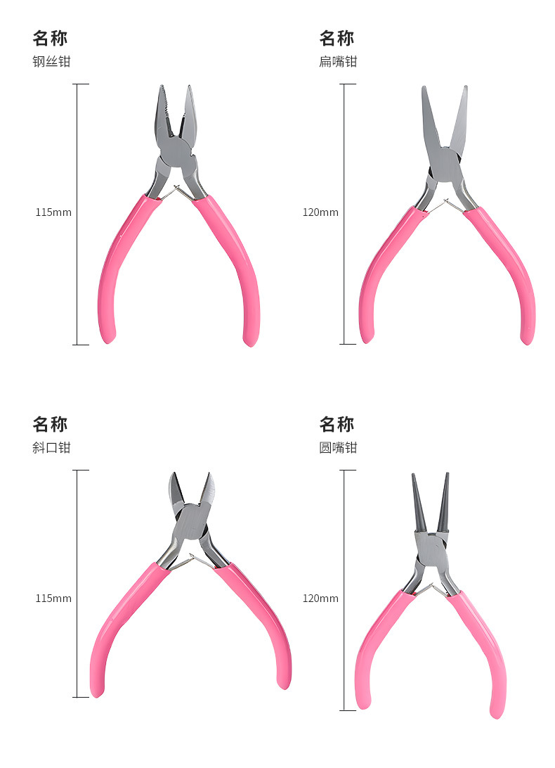 | Modelo | Alicates de aguja,Alicates de corte superior,Alicates de punta fina,Alicates curvos,Alicates de alambre,Alicates de boca redonda,Alicates de punta plana,Alicates diagonales |