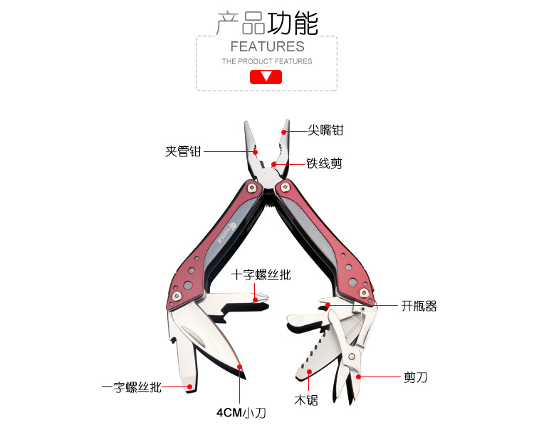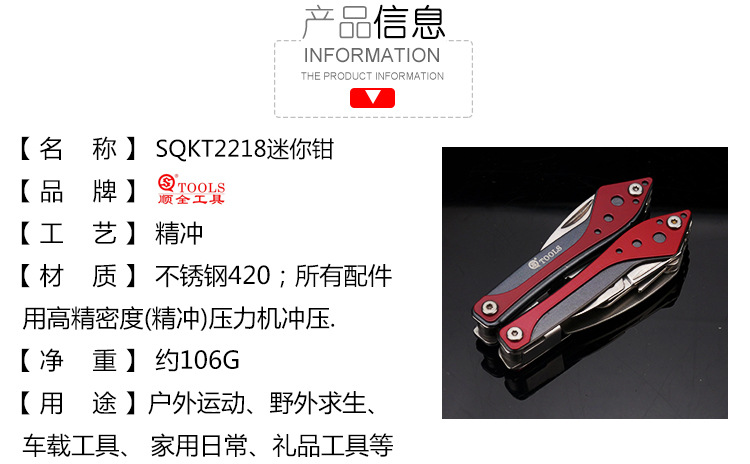 SQT Shunquan 2218 Mini alicates multifunción de autodefensa Mini alicates plegables Cuchillo EDC Equipo de supervivencia al aire libre