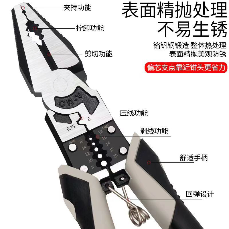 Alicates multifuncionales de estilo alemán, cortadores de alambre excéntricos de grado industrial, alicates de punta fina, alicates diagonales, alicates especiales para electricistas para pelar cables