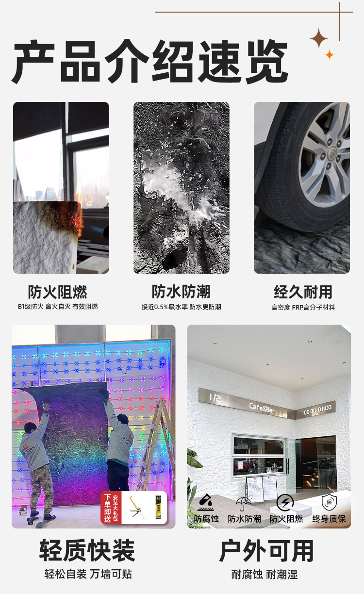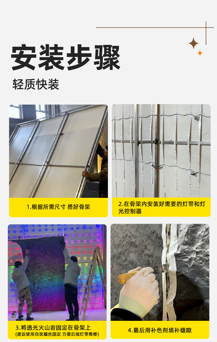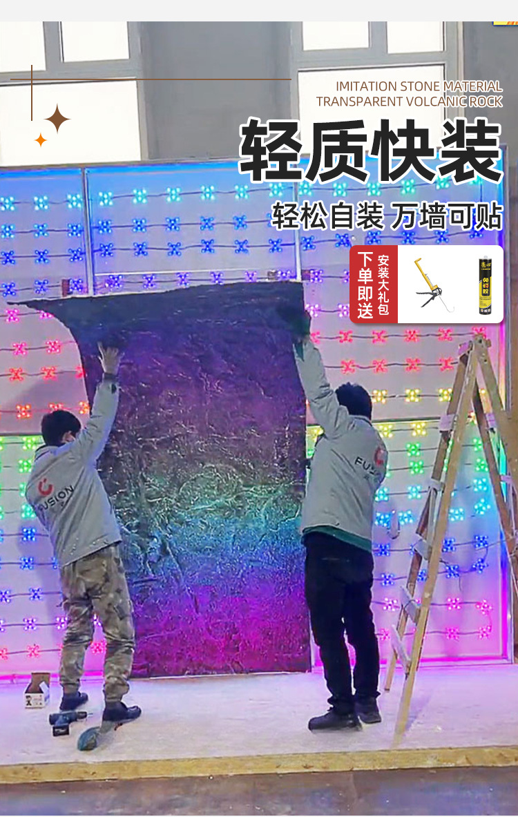 Frp losa de piedra volcánica translúcida pu piedra de piel de piedra en polvo tablero decorativo de piedra blanda panel de revestimiento de piedra flexible panel de pared de fondo