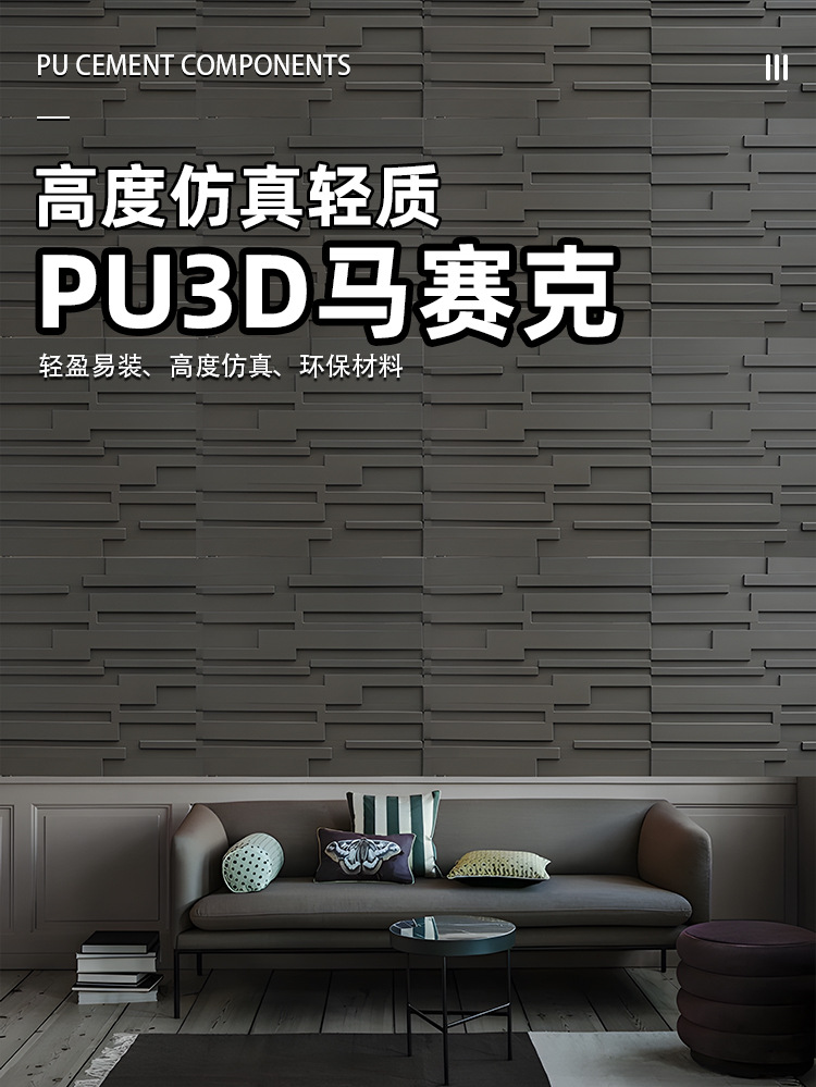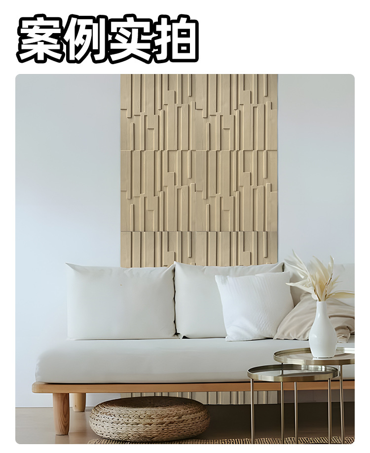 PU TV fondo pared 3D mosaico barra vertical línea de madera decoración de pared nuevo material de decoración piedra de cultura de madera