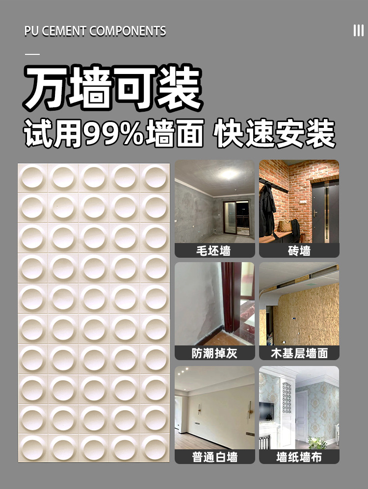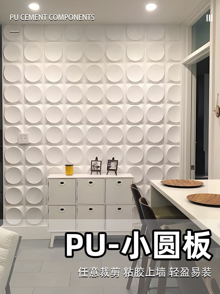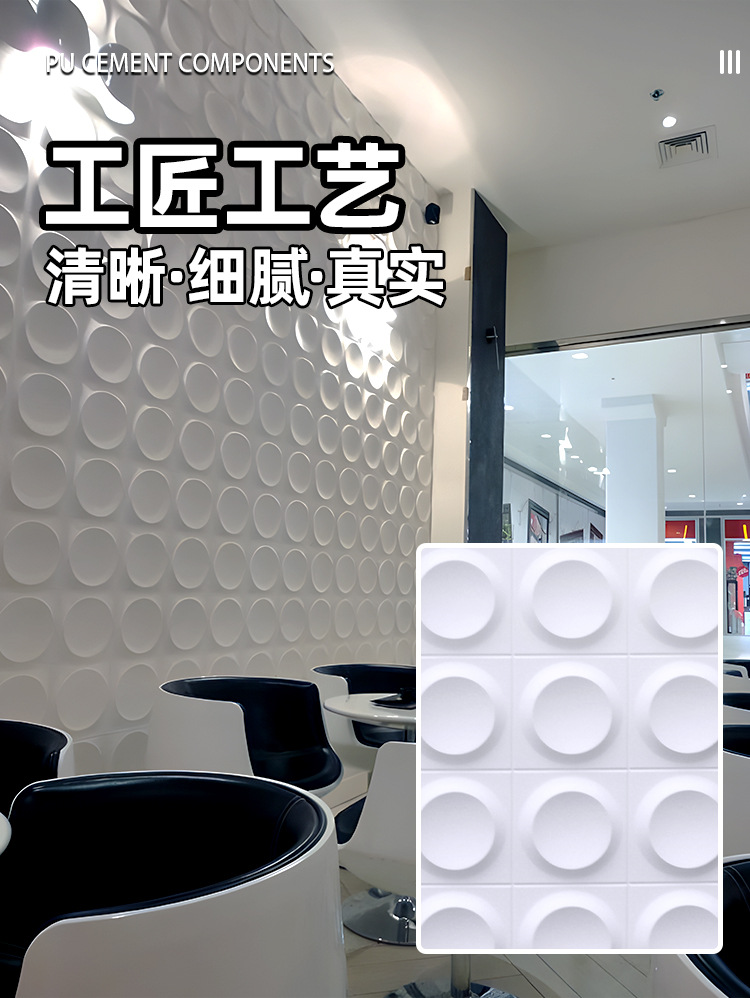 PU pequeña placa redonda, piedra cultural ligera, pared de fondo decorativa de red roja, estructura tridimensional redonda en tres D, ladrillo de pared exterior de cuero de mampostería
