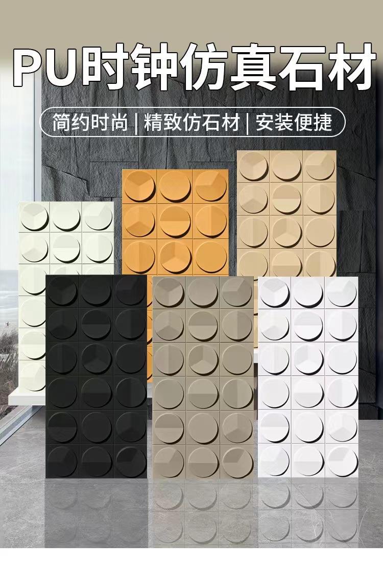 Pu Componente de reloj Ladrillo geométrico 3D Componente tridimensional Ladrillo redondo grande Ladrillo cultural ligero pared de fondo Decoración de cabeza de puerta de piel de piedra