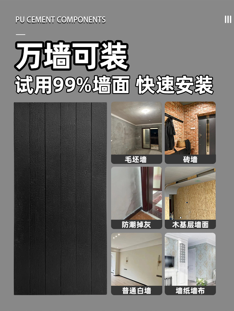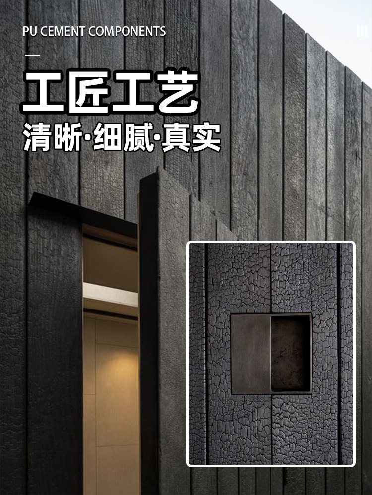 PU Madera carbonizada Tablero de carbón negro Tablero de fondo de ladrillo antiguo agrietado Tablero decorativo de pared exterior de piedra cultural