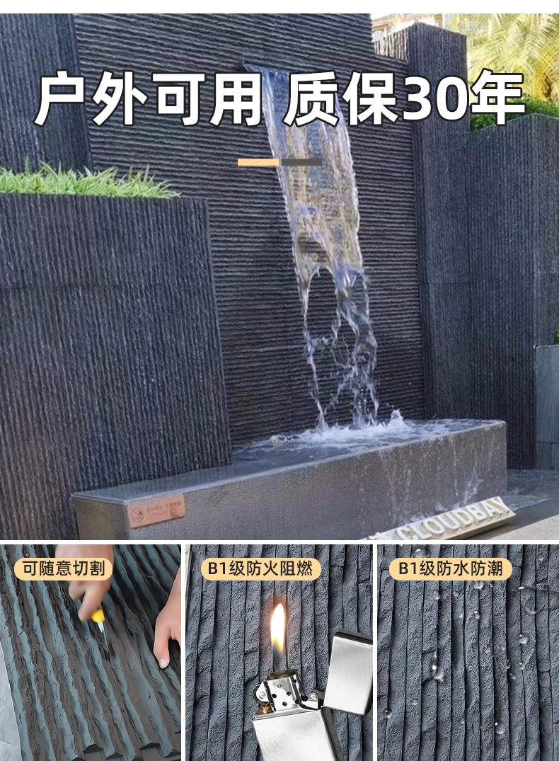 PU paisaje piedra de agua agua muro cortina pared exterior pvc cultura piedra pared de fondo ladrillo de pared exterior piedra de piel de pu ligera