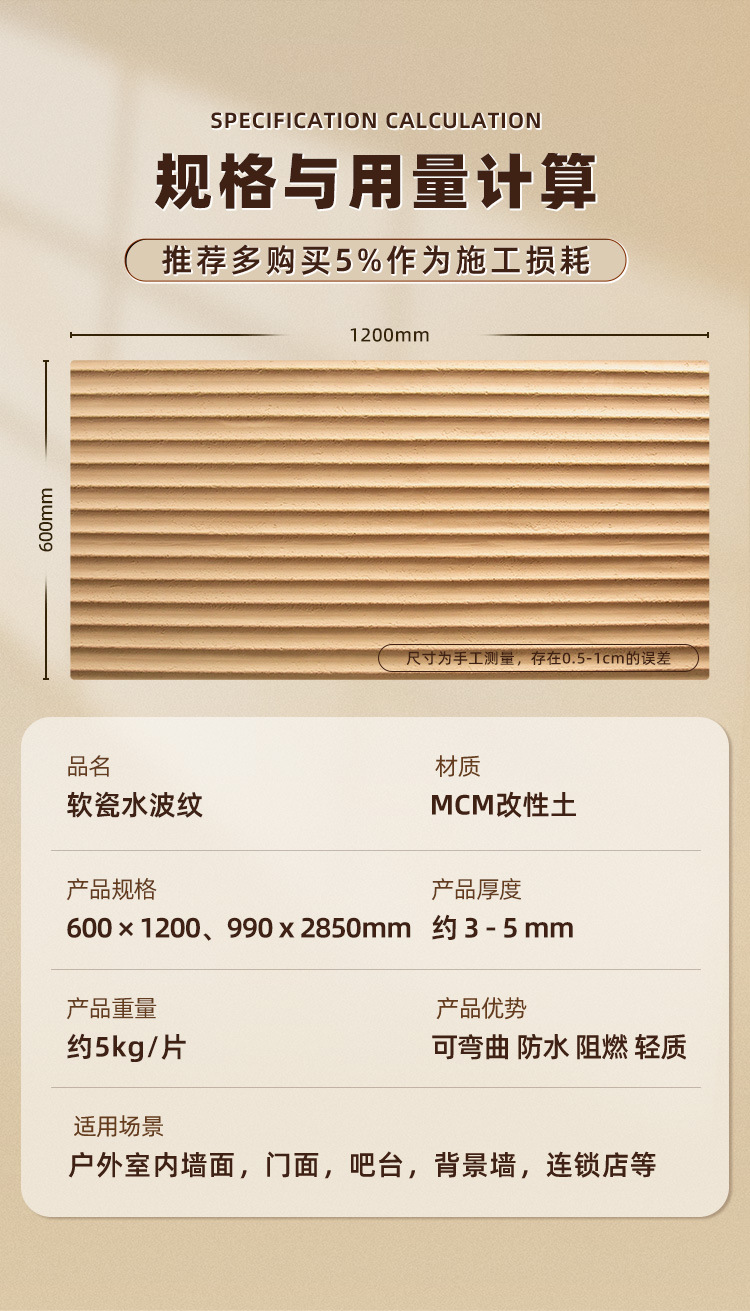 Tablero grande corrugado de agua suave, panel decorativo de piedra blanda, pared de fondo de piedra flexible flexible, tablero decorativo de parche de porcelana suave