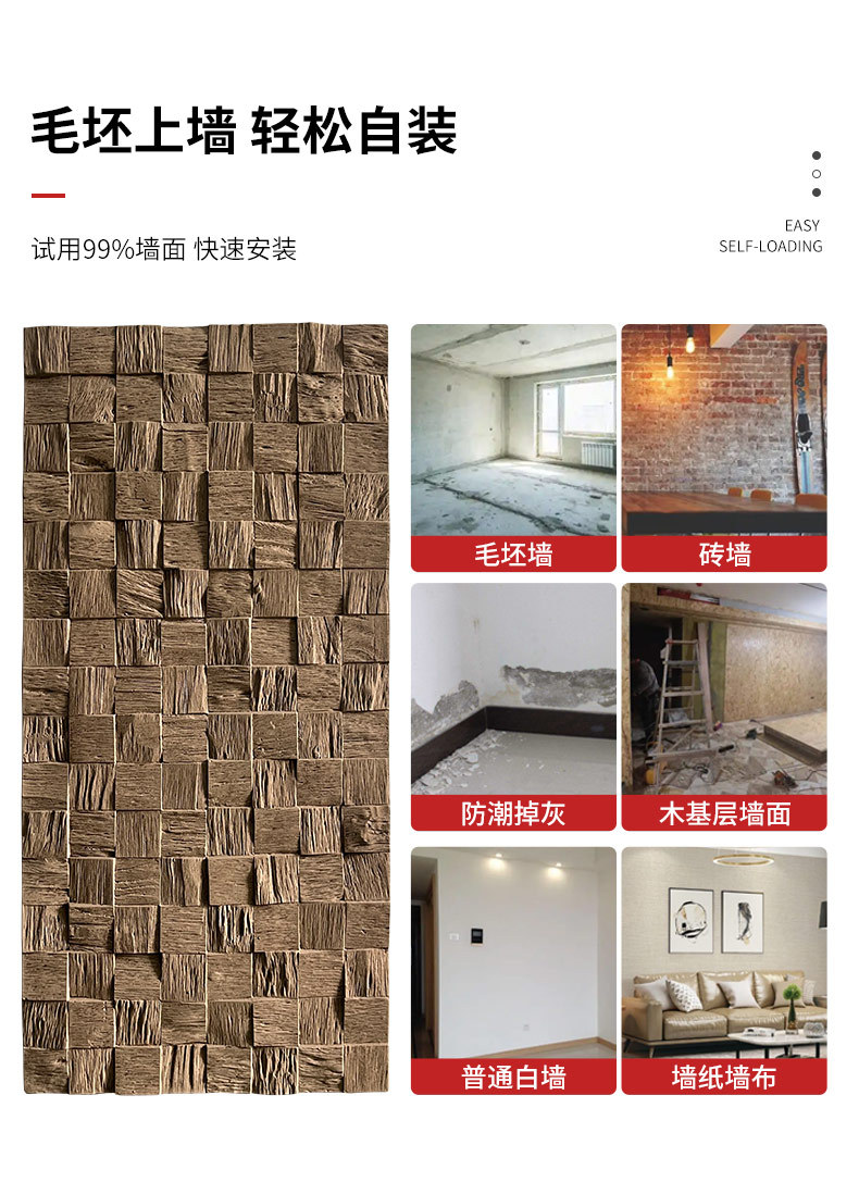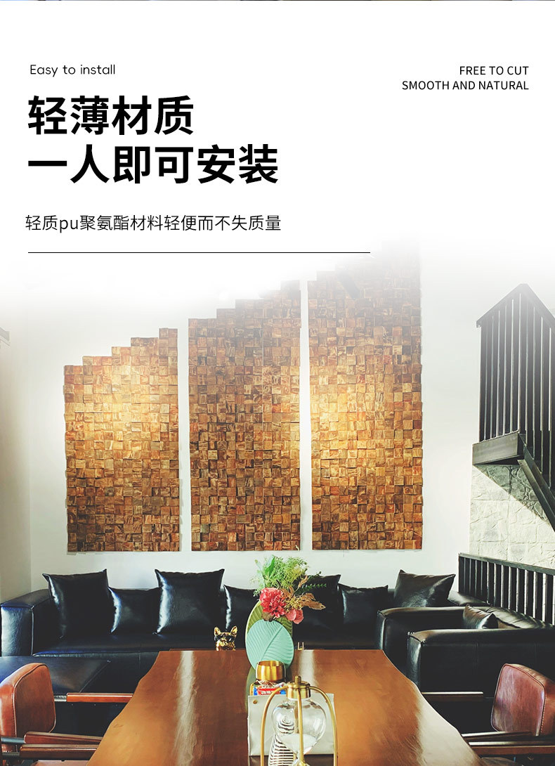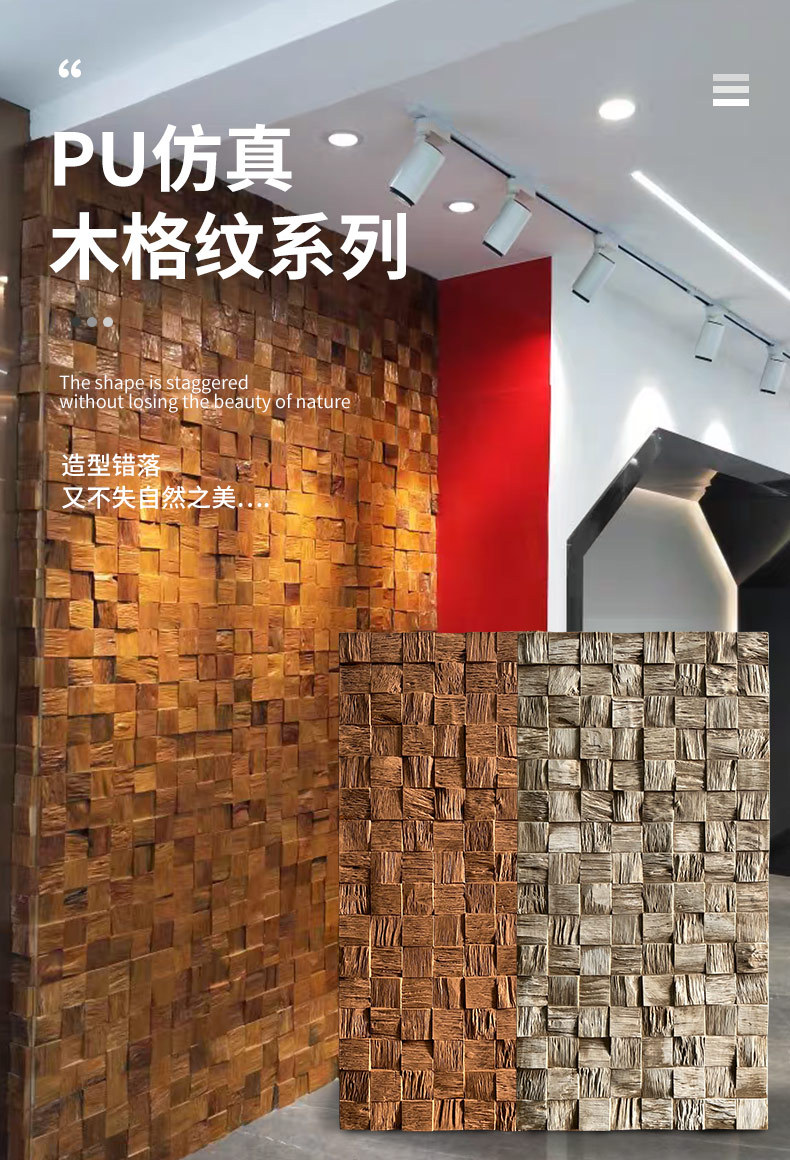 PU madera a cuadros decoración desgastada madera de barco antiguo mosaico pared de fondo decoración de madera azulejos de decoración del hogar material de decoración de la pared