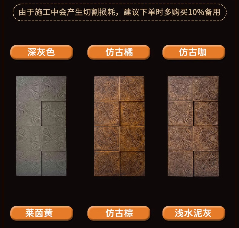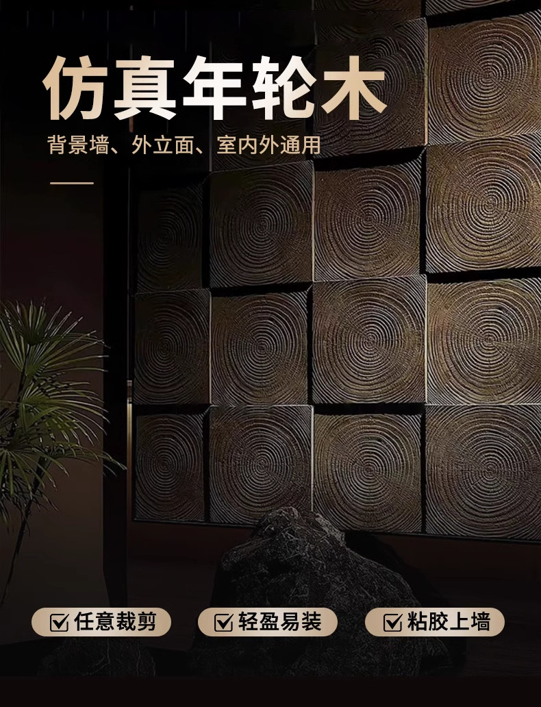 PU ligero anillo anual piedra cultural de madera componente de cemento ladrillo simulación ladrillo de grano de madera decoración retro pared de fondo nuevo material