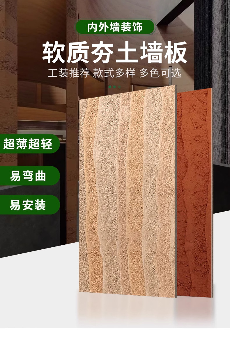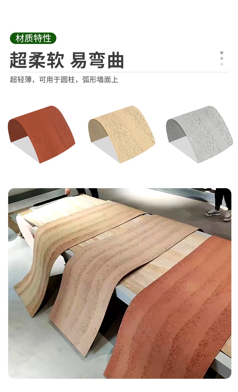 Piedra flexible flexible flexible Hoja de piedra blanda ultrafina Tablero de tierra apisonada de porcelana blanda Tablero de fundición de arte Panel de pared exterior